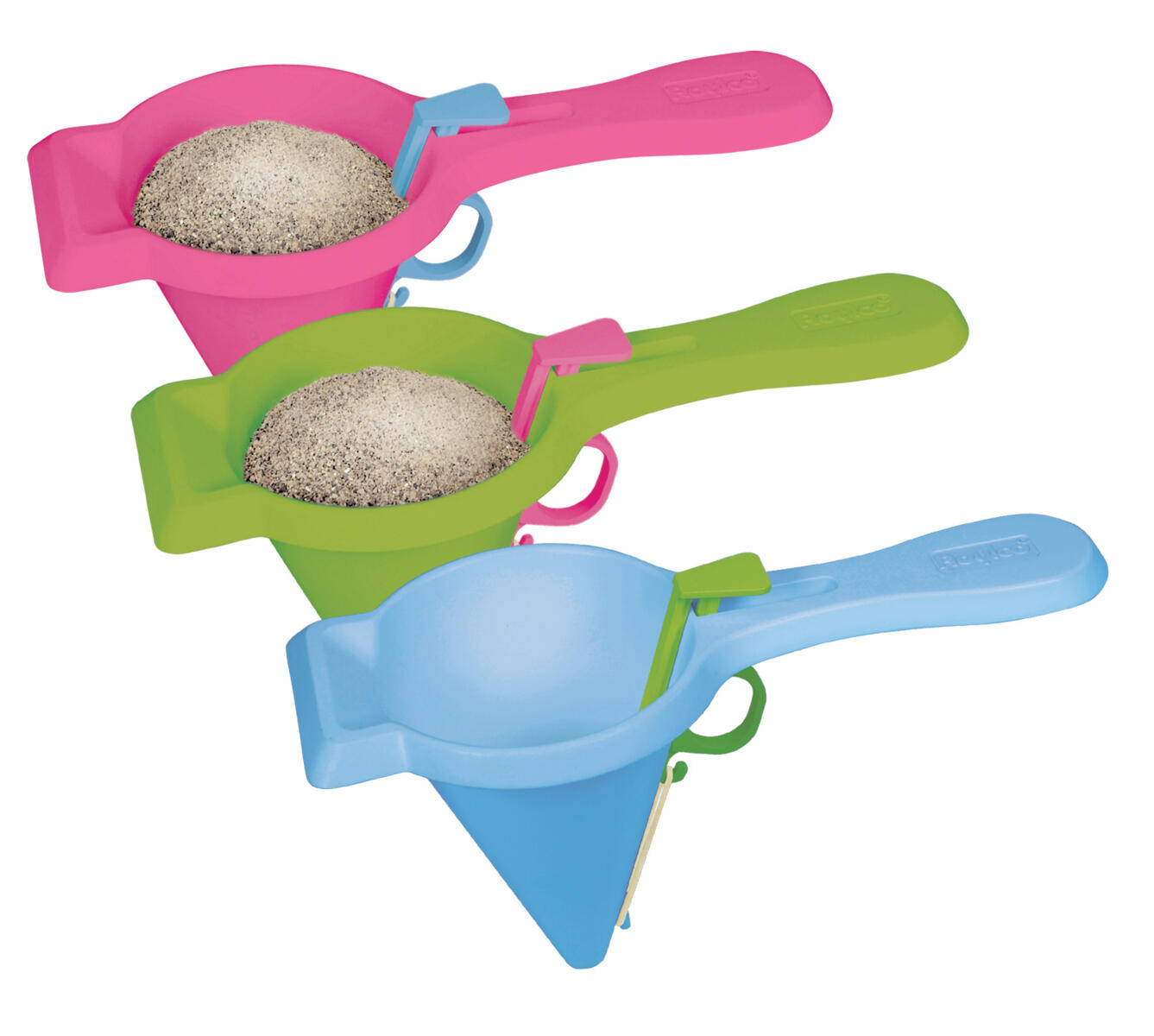 3 stk. Fyld skovlen, tryk på knappen, og se hvordan sandet løber ud. Skriv bogstaver, tal eller lav billeder. Mål: 20,5 x 12 cm. Materiale: PE. Fra 3 år.