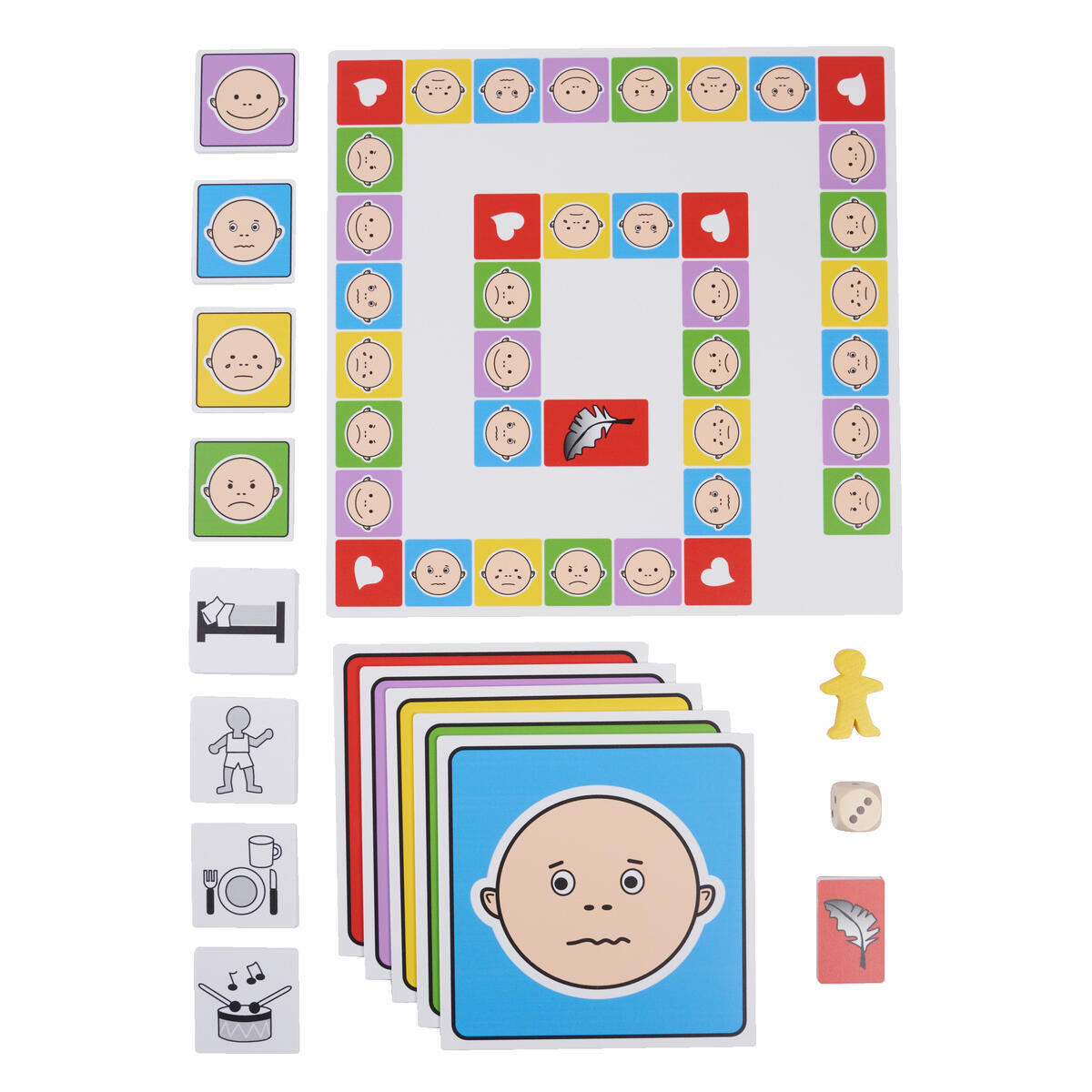 24 billeder af mennesker, som udtrykker forskellige følelser. Lad barnet beskrive følelsen, som vises på billedet og snak om, hvad der kan være sket. Mål: 21x23,5 cm.