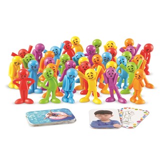 54 dele. Lær børnene at tale om deres egne følelser og læse andres følelser. 36 figurer i 6 farver med 6 forskellige følelsesudtryk og 18 aktivitetskort medfølger. Når man ikke taler om følelser, kan man i stedet sortere og matche efter form, farve og følelse. Figurerne er lavet af PVC, uden forbudte ftalater. Fra 3 år.