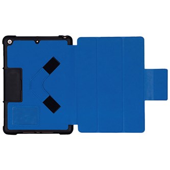 Beskyttende og meget stødsikkert cover til iPad, generation 5 og 6 (9,7 tommer). Det har dobbeltforstærkede og hævede hjørner for ekstra beskyttelse mod slag. På bagsiden er der en patenteret V-rem, der kan benyttes som håndtag, og en transparent kortlomme. Kan foldes, så din tablet kan stå.