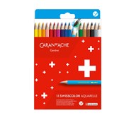 18 stk/pk. Højpigmenterede farveblyanter som både kan anvendes til tør farvelægning og akvarelmaling. Farverne kan blandes med hinanden, ved at male dem over med vand, hvilket giver en akvareleffekt. Ø2,8 mm farvestift. Pennekrop Ø7 mm.
