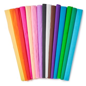 10 ruller/pk. Storpakke med crepepapir til hobbyarbejde. 50x250 cm/rl. Enkeltfarver.