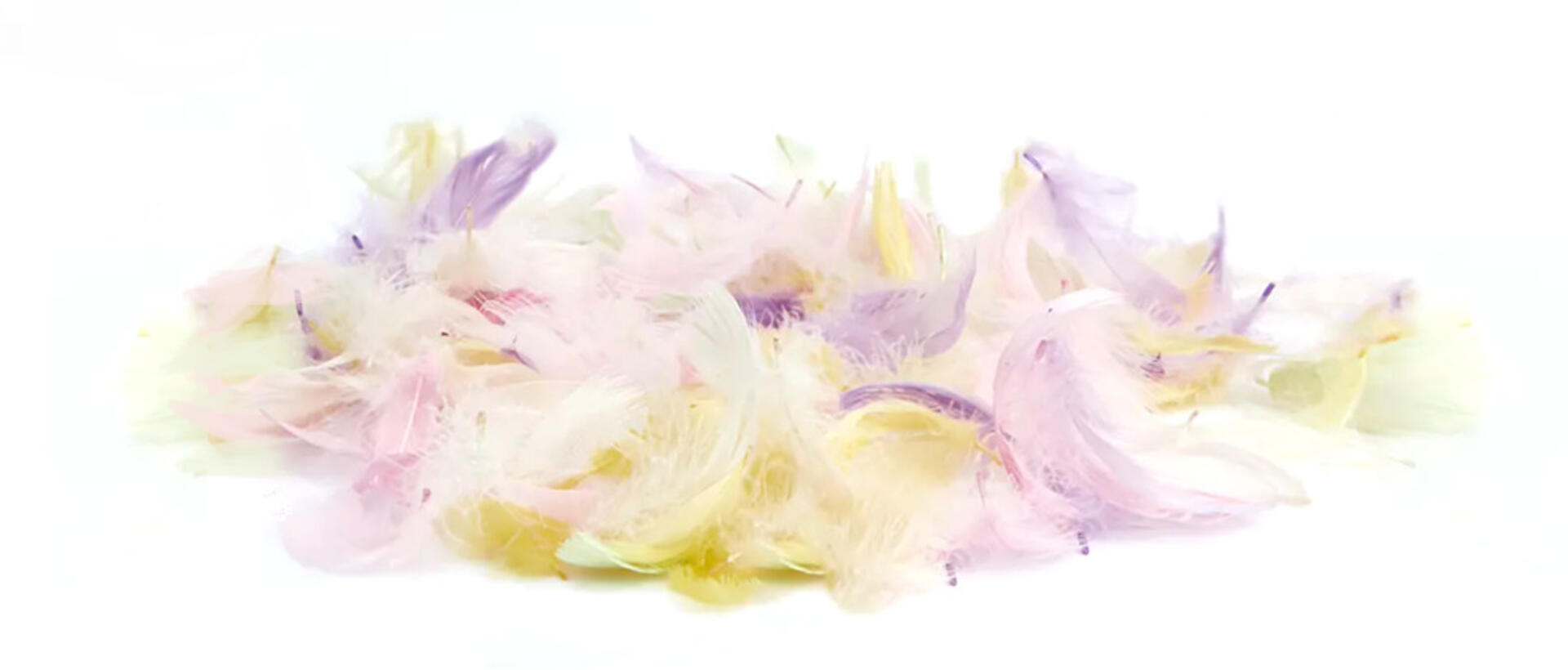 200 stk./pk. Kalkunfjer 5–10 cm i pastelblandede farver.