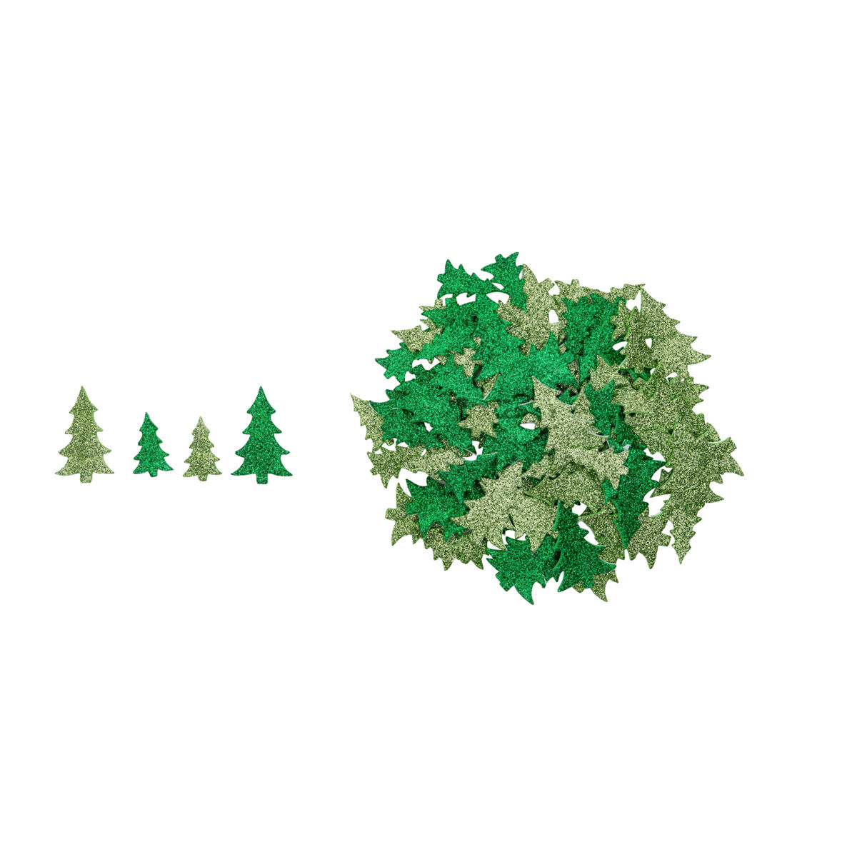 100 stk./pk. Farverige EVA-skumstickers formet som glitrende juletræer. To grønne nuancer og to størrelser. Velegnet til kort, collage og dekorationer. Højde ca. 3 og 4 mm.