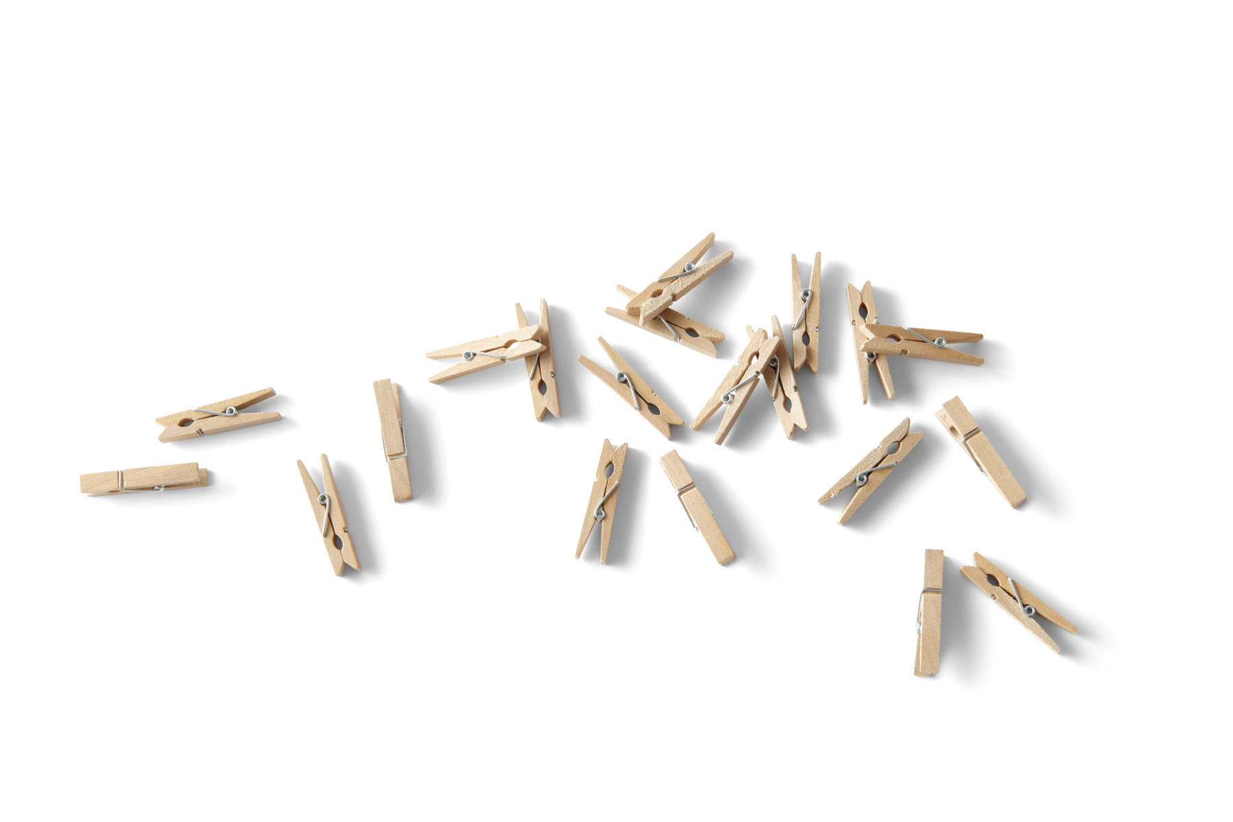 100 stk./pk. Tøjklemmer i ubehandlet træ. Kan bruges til kreative projekter eller til ophæng af tegninger. Længde 45 mm.