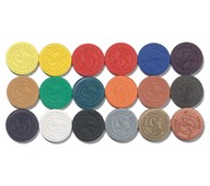 120 stk/pk. Transparente farver. 20 stk. af hver farve: cintongul, gul, rød, cinnoberrød, ultramarin og preussianblå. Farveblokke Ø30 mm, tykkelse 4 mm.