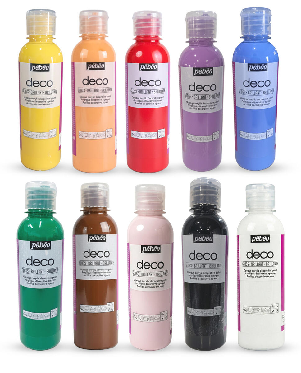 10x250 ml. En silkemat hobbymaling med god dækkeevne. Kan bruges på de fleste underlag, f.eks. papir, træ og sten. Kan bruges både inde og ude. Mal genstanden indenfor og lad den tørre i mindst 24 timer, før den kan bruges ude. Indeholder farverne gul, orange, rød, lilla, blå, turkis, grøn, lime, sort og hvid. Farverne kan blandes med hinanden til forskellige nuancer. Tørrer vandfast og vejrbestandigt. Vask værktøj og tøj før maling er tørret.