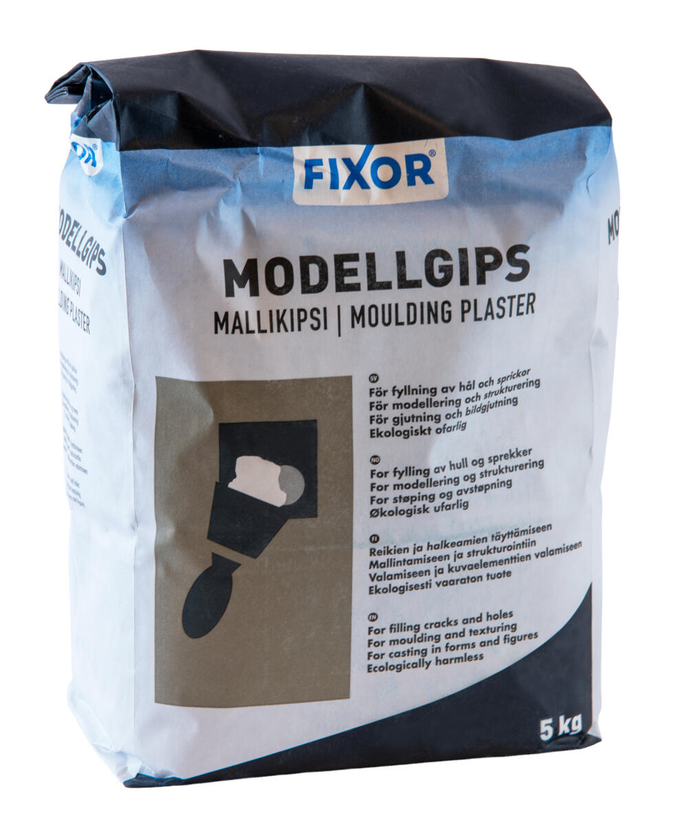 5 kg/pk. En finkornet specialgips i høj kvalitet, som tørrer hurtigt med en porcelænslignende overflade. Bliver hvidere og har en større hårdhed end almindeligt gips. Blandningsforholdene er 0,25 l vand til 1 kg specialgips.