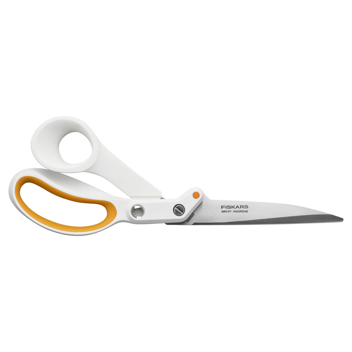 1 stk./pk. Tekstilsaks af høj kvalitet til højrehåndede med avanceret Amplify-teknologi, som forhindrer, at bladene spreder sig ved klipning gennem tykke eller flere lag tekstil. RazorEdge™-bladene er ekstra skarpe og klipper helt ud til spidsen. Ergonomisk Softgrip-håndtag. Længde 210 mm, bladlængde 83 mm. Fremstillet af rustfrit stål og PBT. Rengøres med fugtig klud, tåler ikke opvaskemaskine.