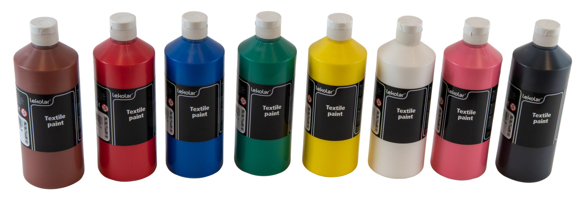 8x500 ml. Tekstilfarve til maling og tryk. Egner sig bedst til lyse, cellulosebaserede stoffer som bomuld, hør og viskose. Mørke tekstiler grundes med dækhvid tekstilfarve (varenr. 119390). Fikseres med strygejern ved 50–60 °C i fem minutter efter tørring. Kan vaskes ved op til 40 °C. Farven kan give pletter, også uden fiksering – beskyt derfor altid tøj og sarte overflader under brug. Indeholder dækhvid, gul, rød, rosa, lilla, lysegrøn, grøn og sort. PVC-fri.