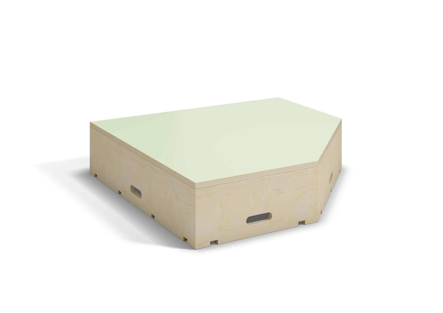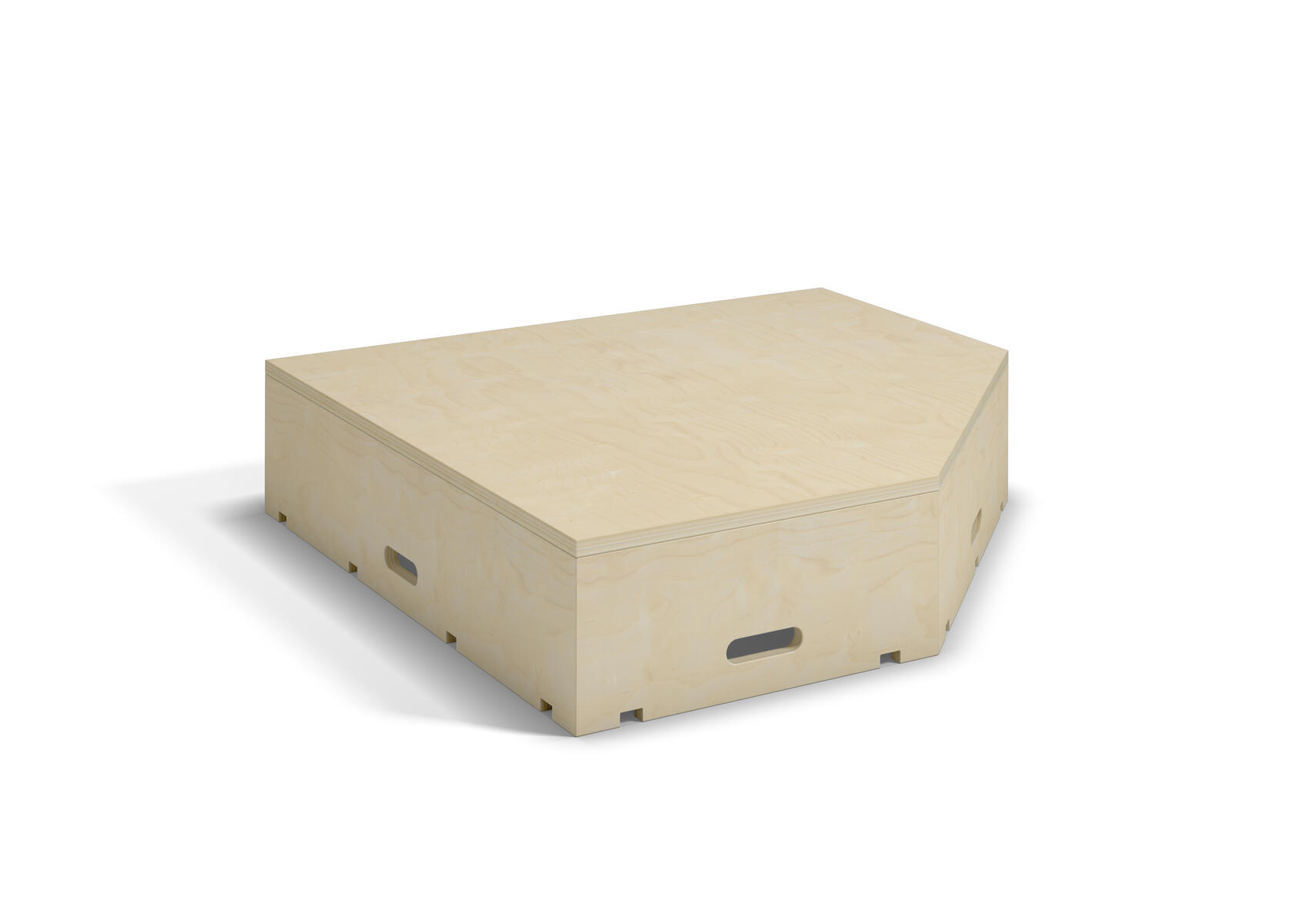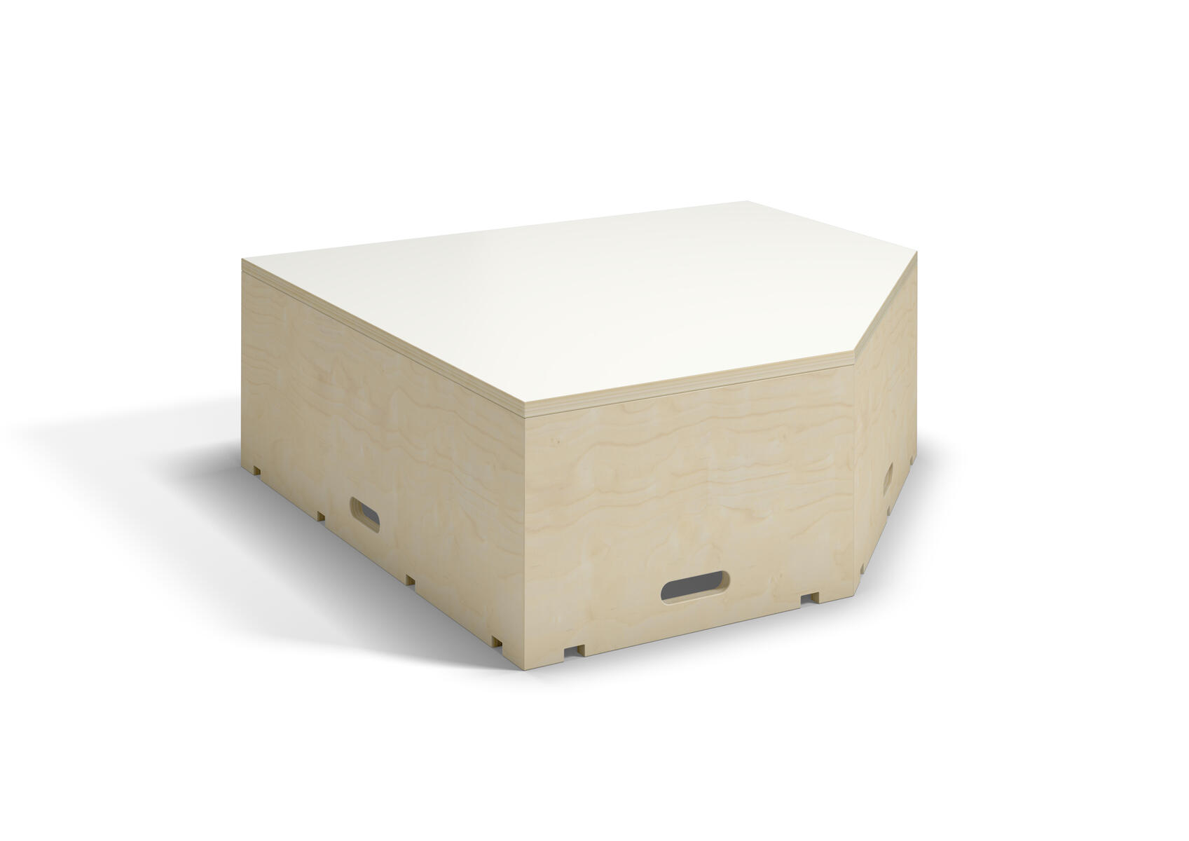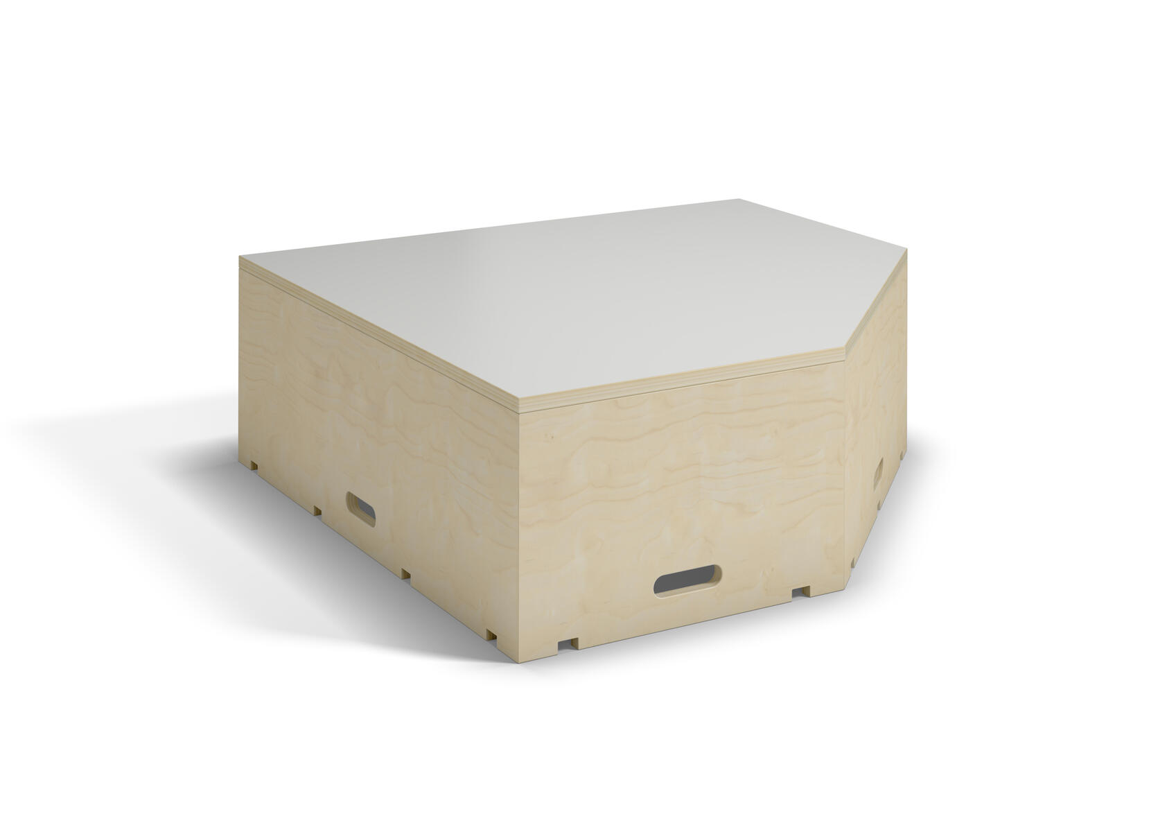 Podium til børnehave. Fås i mange forskellige varianter, som kan bygges sammen i uendelige former. Kan også bygges sammen med vores FIXA opbevaringssystem både i bredden og dybden. Fås i 10 forskellige former. De kan bruges som scene, legeplads, forskellige køretøjer, udstilling, hvileplads...kun fantasien sætter grænser. Fremstillet i 100 % birkekrydsfinér. Alle dele fås i 3 højder. Podiet med birketop er helt i krydsfinér, de andre med farvet højtrykslaminat på toppen. Tørres af med en fugtig klud. Mål: 59x36x36 cm. Svanemærket, licensnummer 5031 0099.
