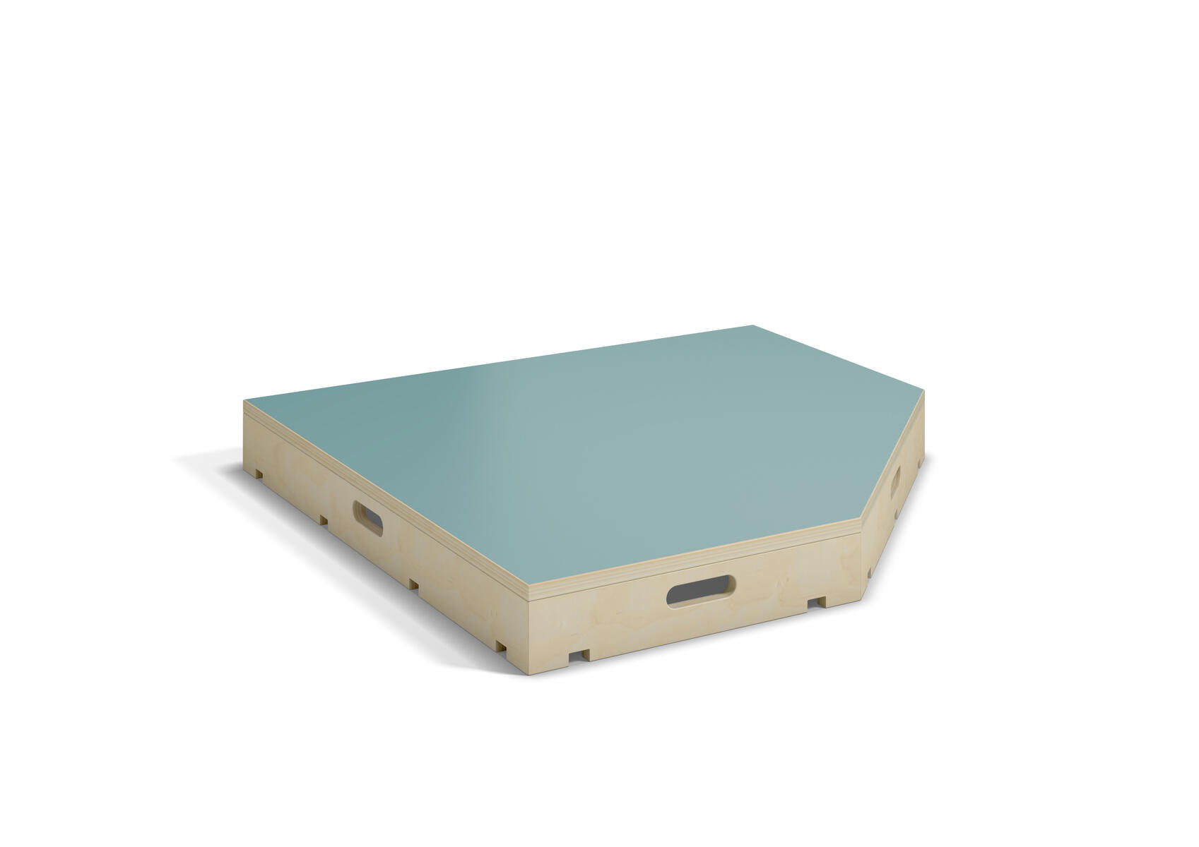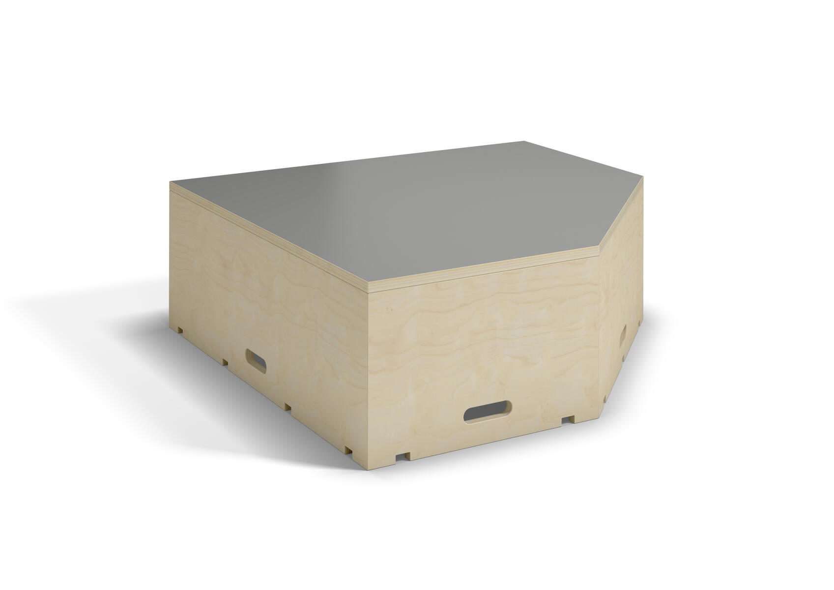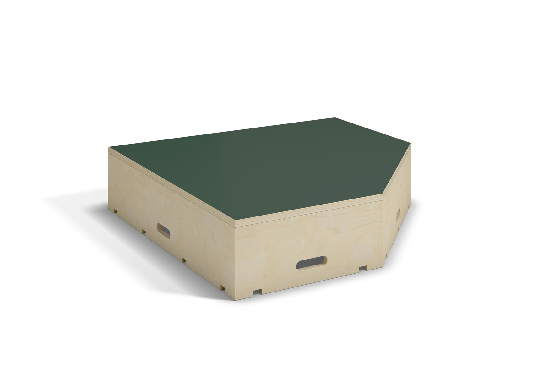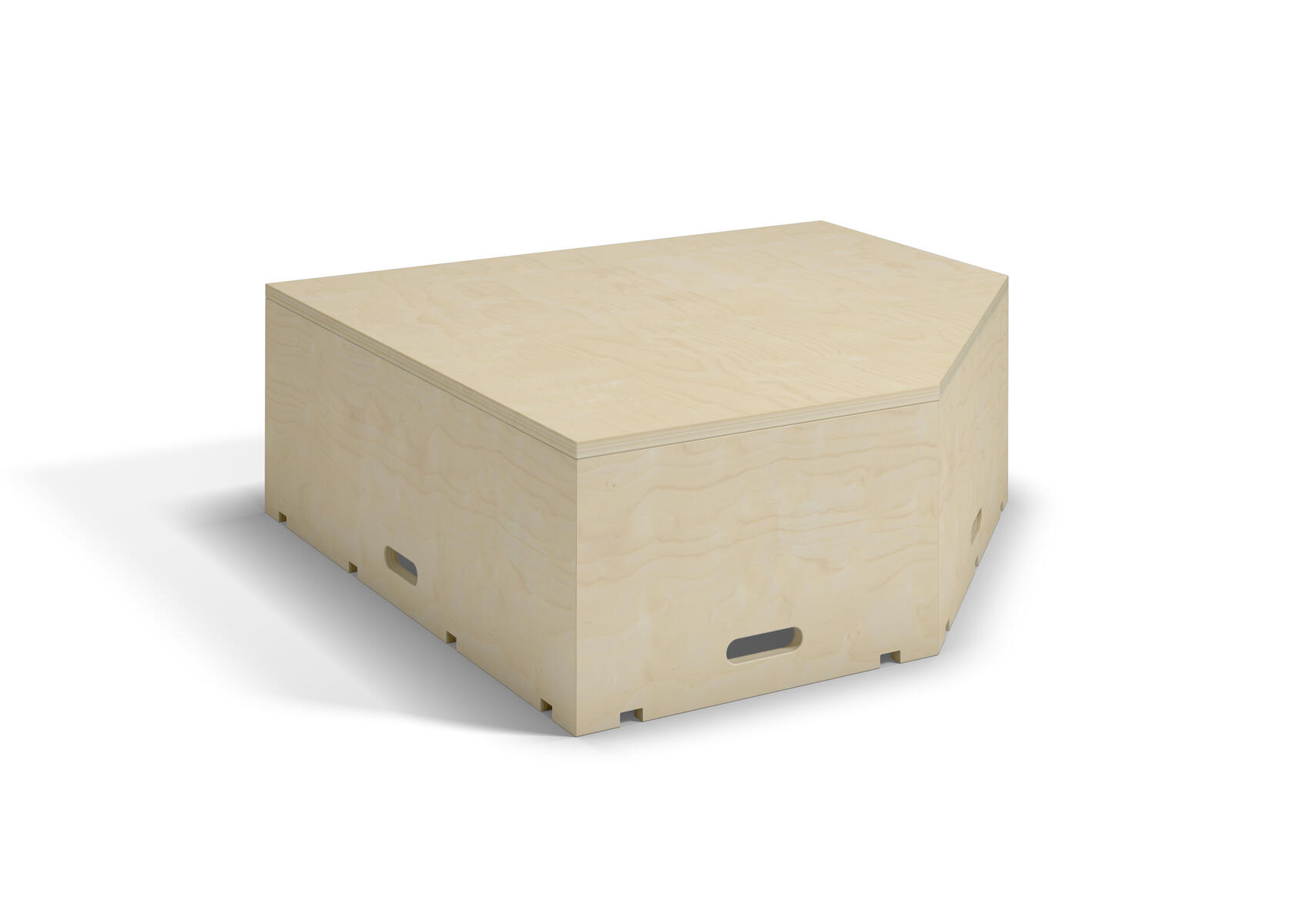 Podium til børnehave. Fås i mange forskellige varianter, som kan bygges sammen i uendelige former. Kan også bygges sammen med vores FIXA opbevaringssystem både i bredden og dybden. Fås i 10 forskellige former. De kan bruges som scene, legeplads, forskellige køretøjer, udstilling, hvileplads...kun fantasien sætter grænser. Fremstillet i 100 % birkekrydsfinér. Alle dele fås i 3 højder. Podiet med birketop er helt i krydsfinér, de andre med farvet højtrykslaminat på toppen. Tørres af med en fugtig klud. Mål: 59x36x36 cm. Svanemærket, licensnummer 5031 0099.