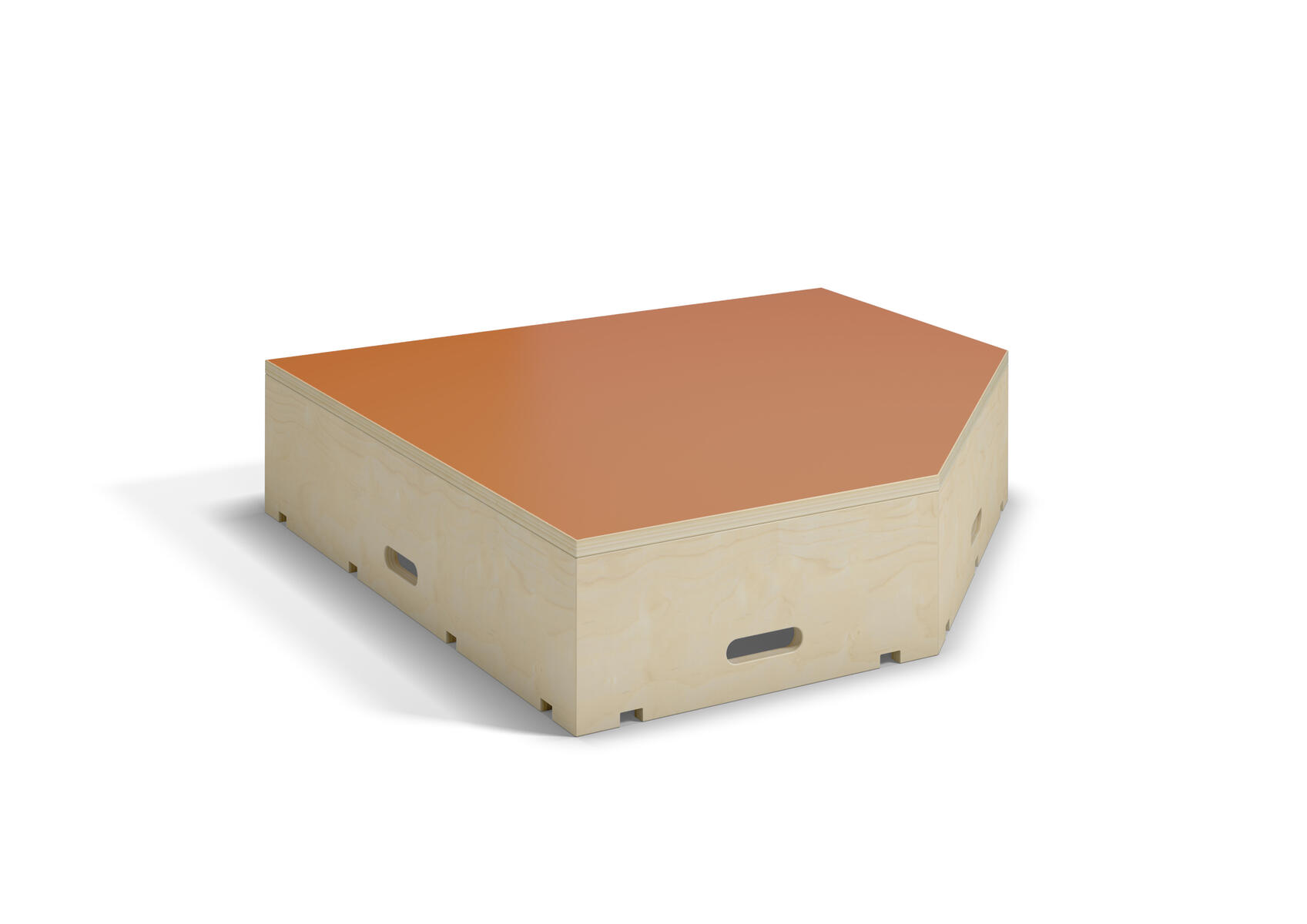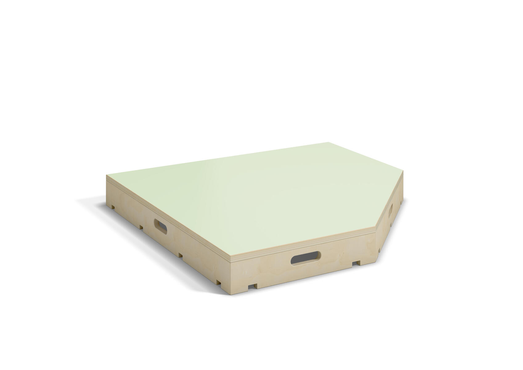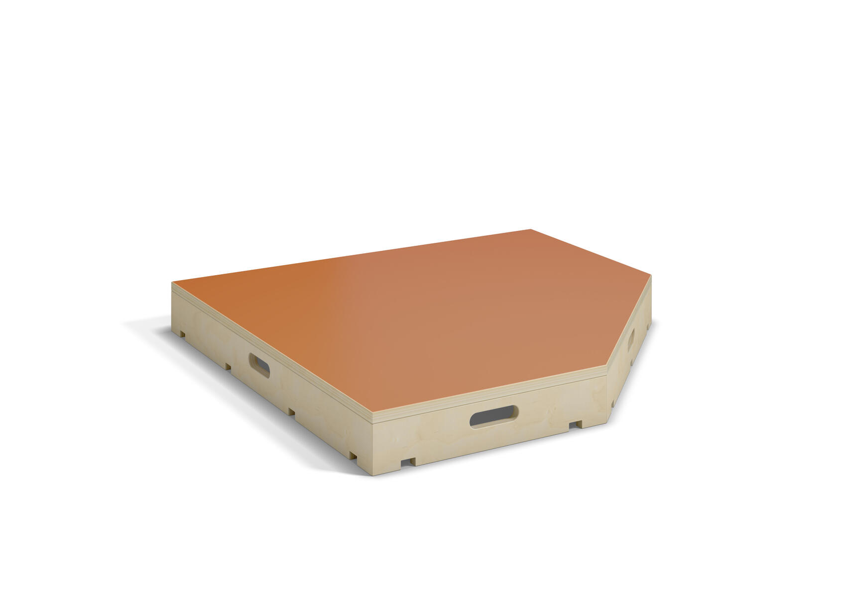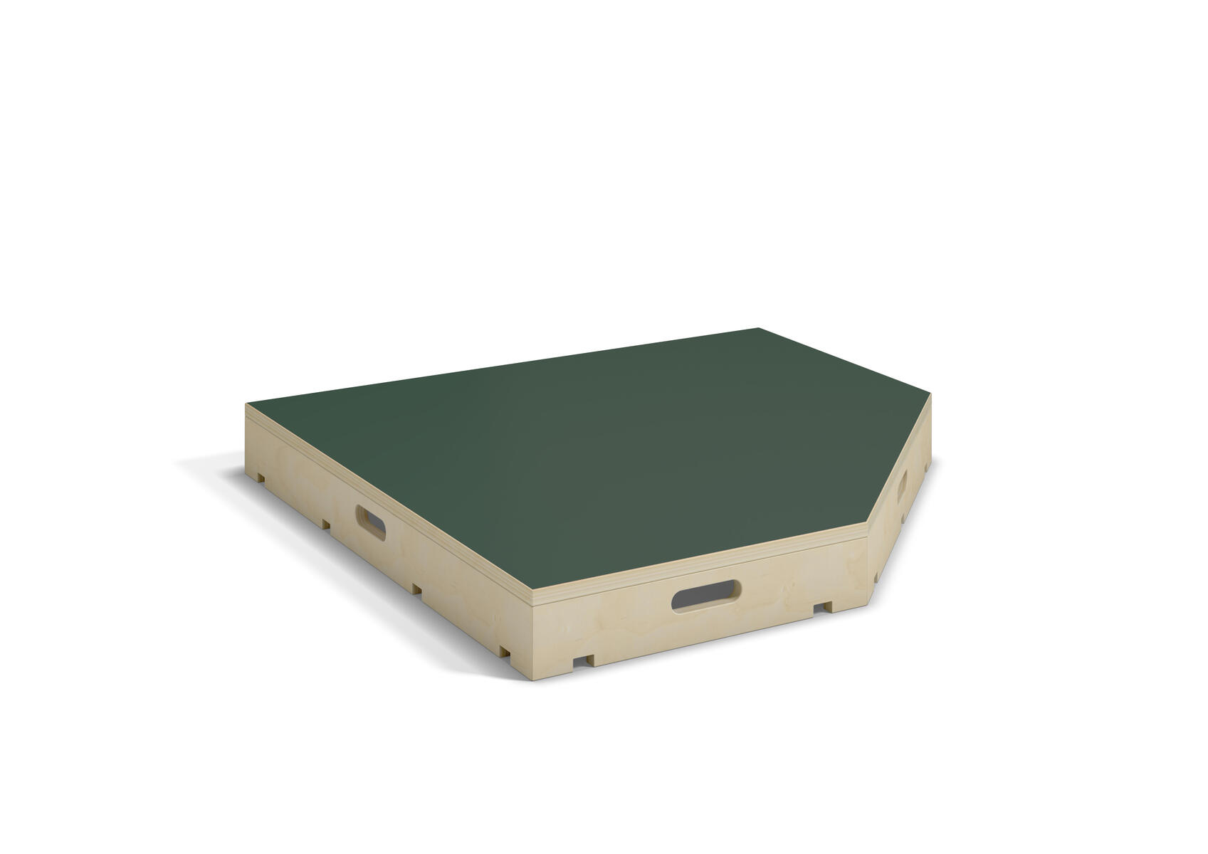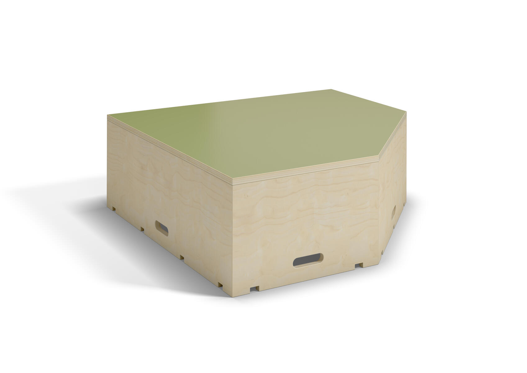 Podium til børnehave. Fås i mange forskellige varianter, som kan bygges sammen i uendelige former. Kan også bygges sammen med vores FIXA opbevaringssystem både i bredden og dybden. Fås i 10 forskellige former. De kan bruges som scene, legeplads, forskellige køretøjer, udstilling, hvileplads...kun fantasien sætter grænser. Fremstillet i 100 % birkekrydsfinér. Alle dele fås i 3 højder. Podiet med birketop er helt i krydsfinér, de andre med farvet højtrykslaminat på toppen. Tørres af med en fugtig klud. Mål: 59x36x36 cm. Svanemærket, licensnummer 5031 0099.