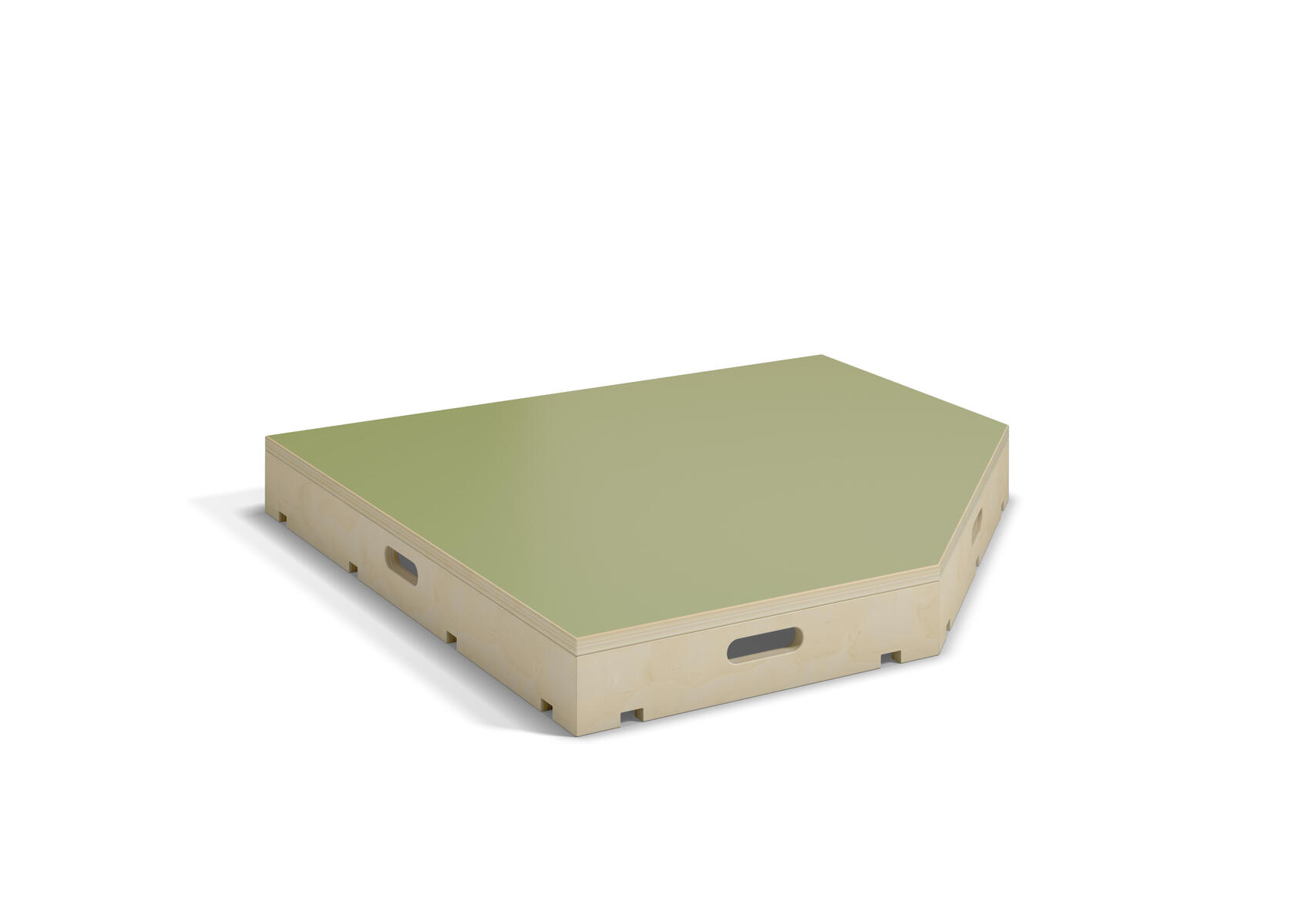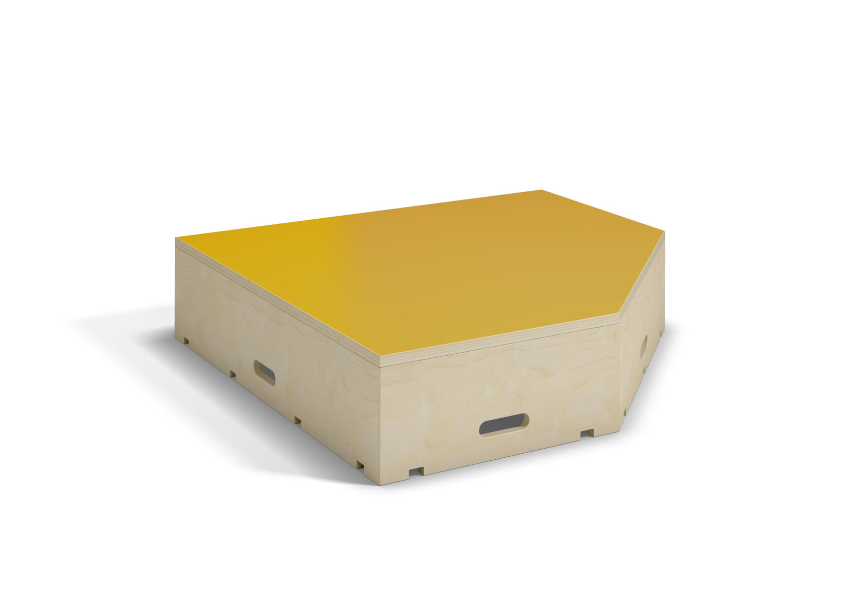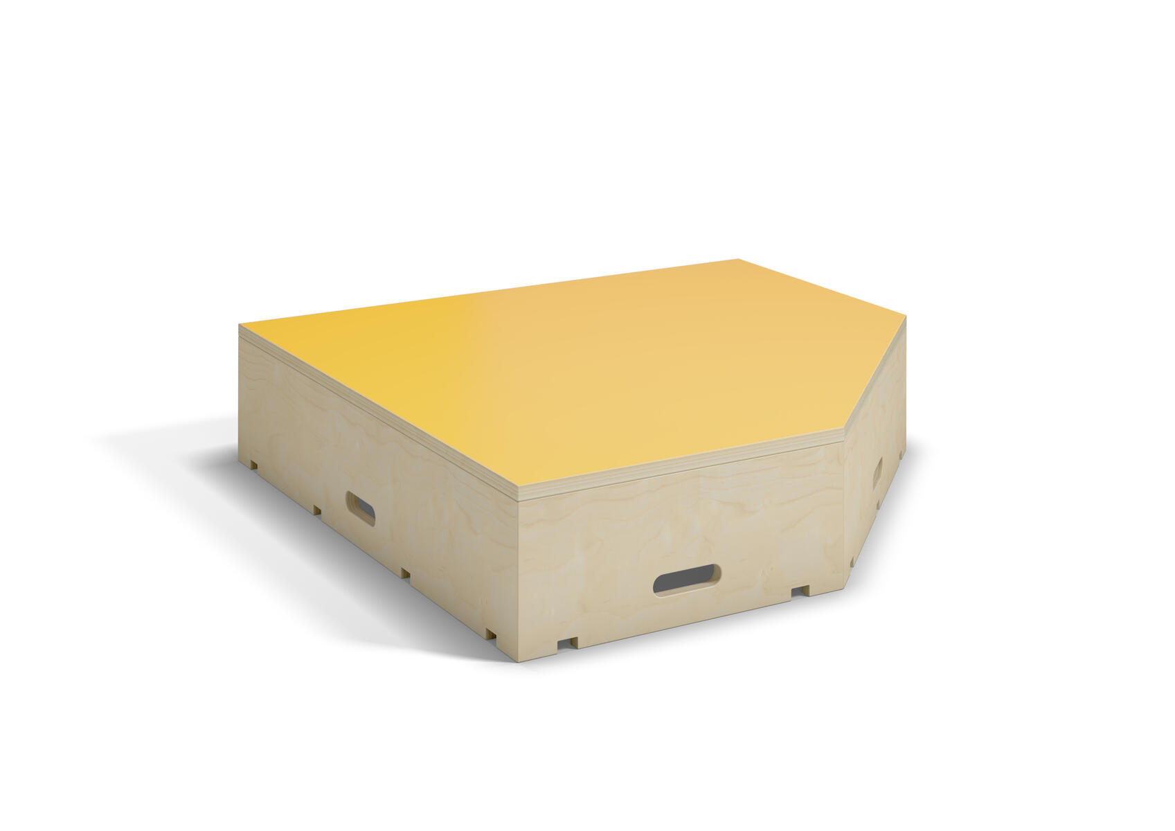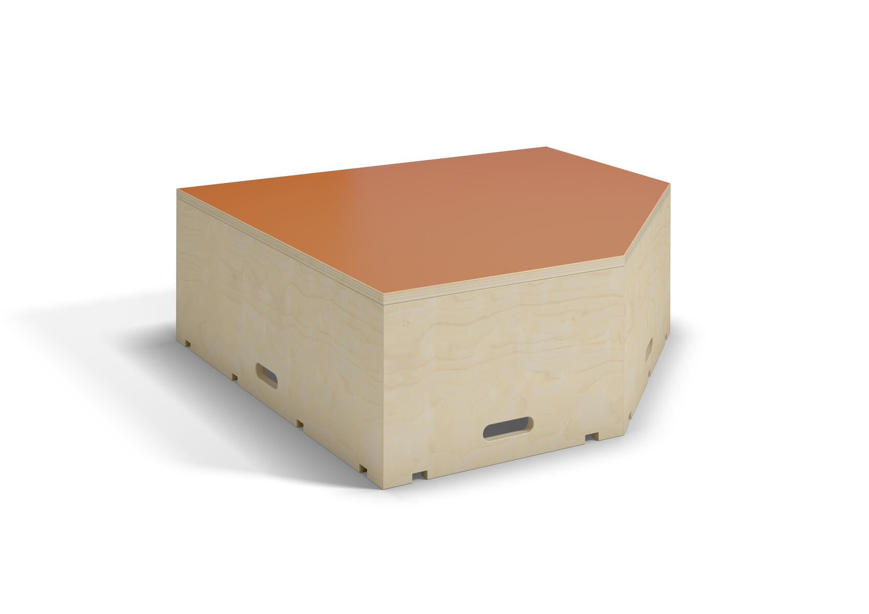 Podium til børnehave. Fås i mange forskellige varianter, som kan bygges sammen i uendelige former. Kan også bygges sammen med vores FIXA opbevaringssystem både i bredden og dybden. Fås i 10 forskellige former. De kan bruges som scene, legeplads, forskellige køretøjer, udstilling, hvileplads...kun fantasien sætter grænser. Fremstillet i 100 % birkekrydsfinér. Alle dele fås i 3 højder. Podiet med birketop er helt i krydsfinér, de andre med farvet højtrykslaminat på toppen. Tørres af med en fugtig klud. Mål: 59x36x36 cm. Svanemærket, licensnummer 5031 0099.