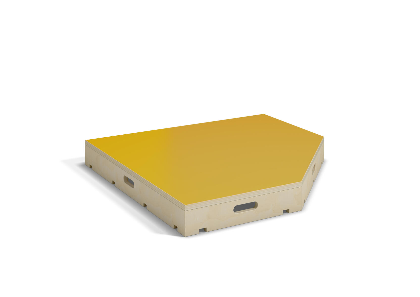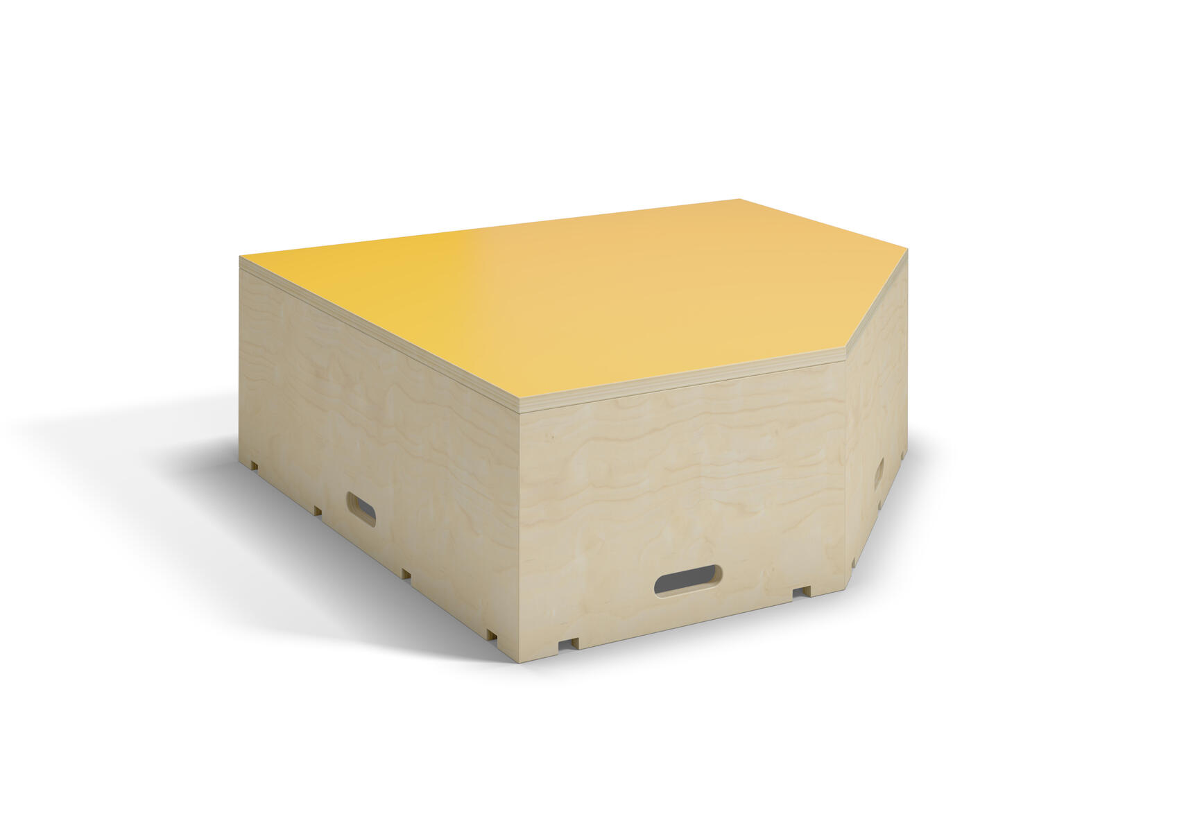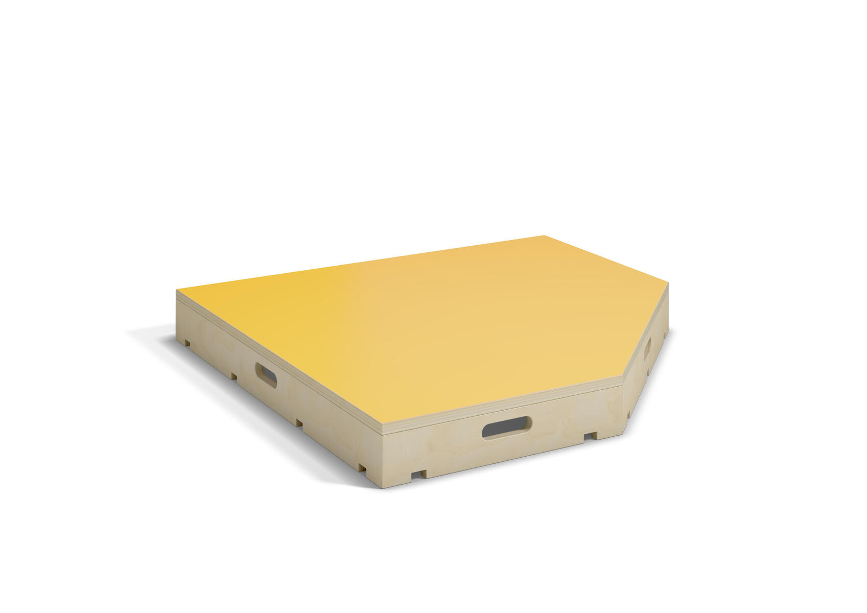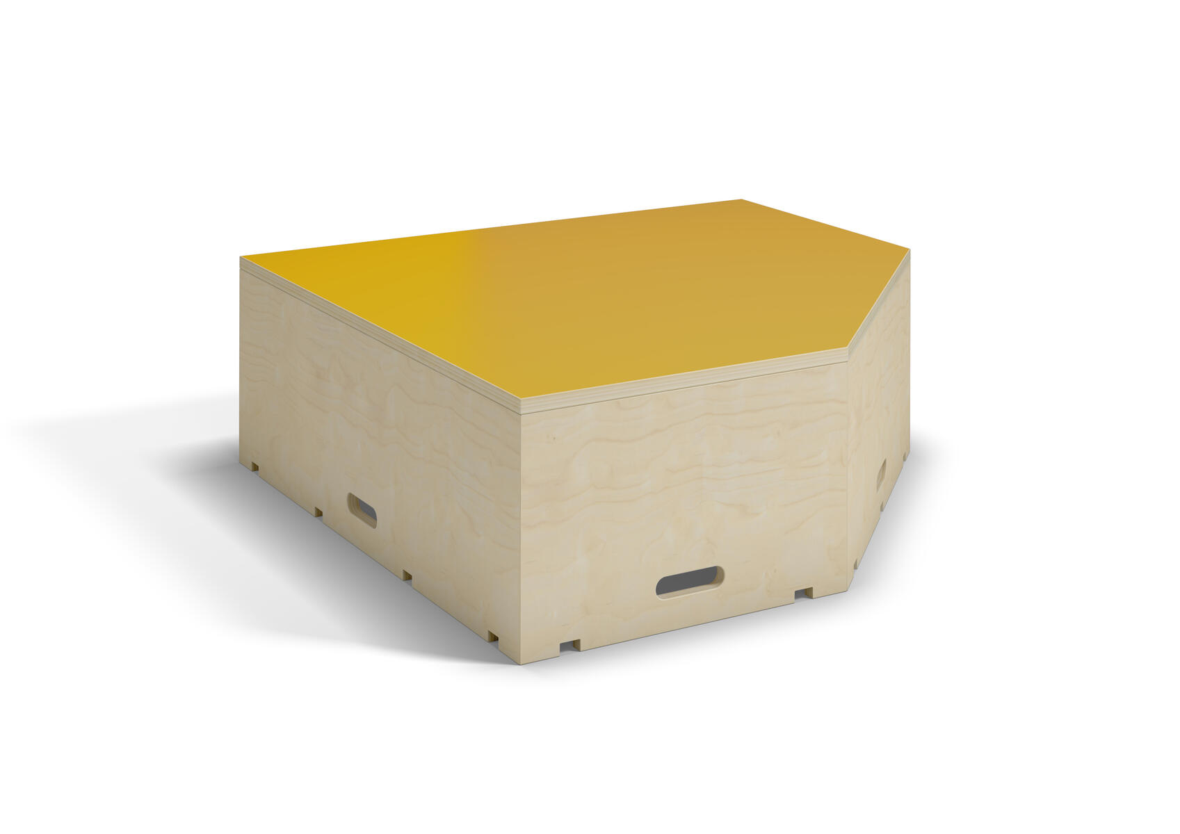 Podium til børnehave. Fås i mange forskellige varianter, som kan bygges sammen i uendelige former. Kan også bygges sammen med vores FIXA opbevaringssystem både i bredden og dybden. Fås i 10 forskellige former. De kan bruges som scene, legeplads, forskellige køretøjer, udstilling, hvileplads...kun fantasien sætter grænser. Fremstillet i 100 % birkekrydsfinér. Alle dele fås i 3 højder. Podiet med birketop er helt i krydsfinér, de andre med farvet højtrykslaminat på toppen. Tørres af med en fugtig klud. Mål: 59x36x36 cm. Svanemærket, licensnummer 5031 0099.