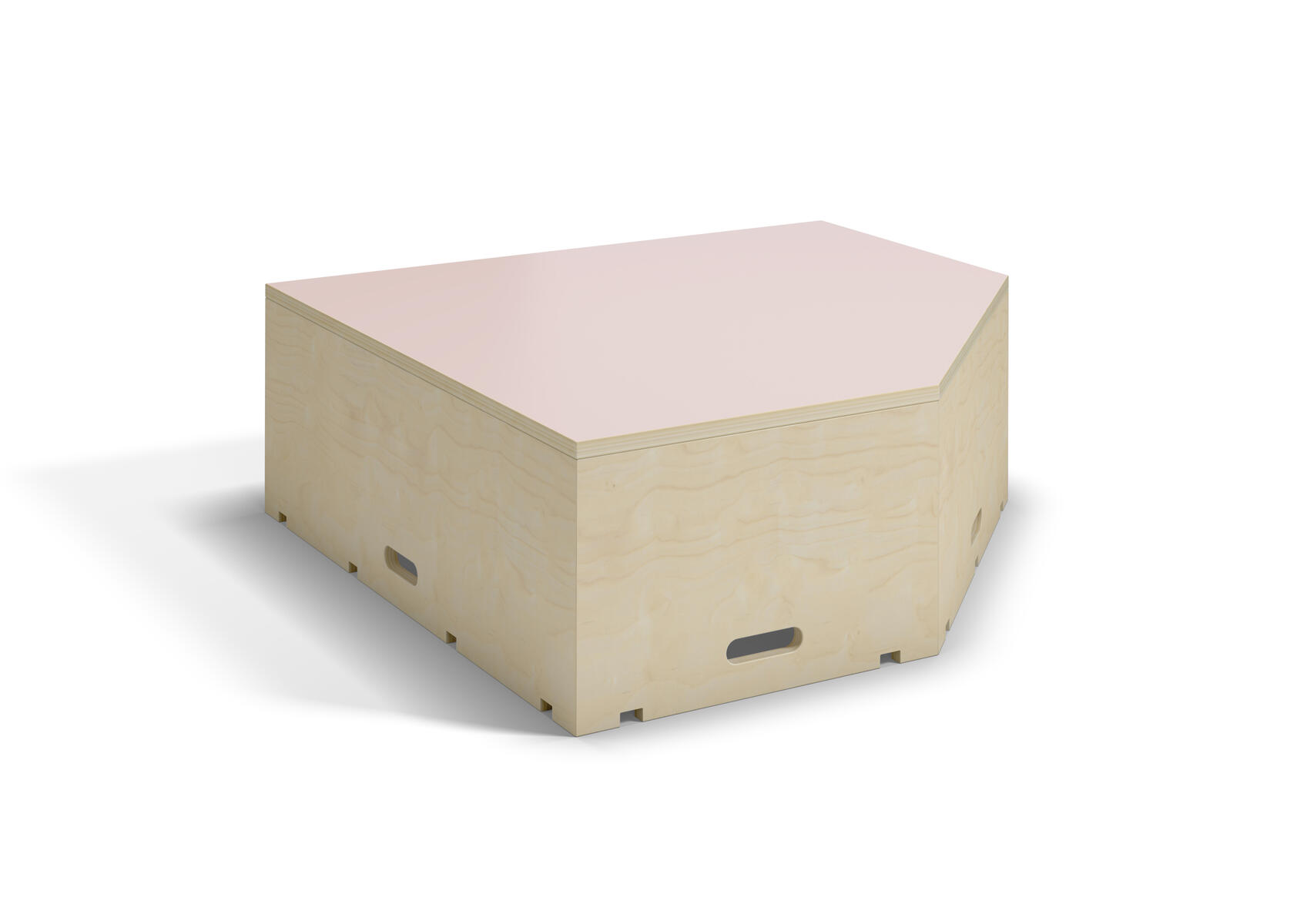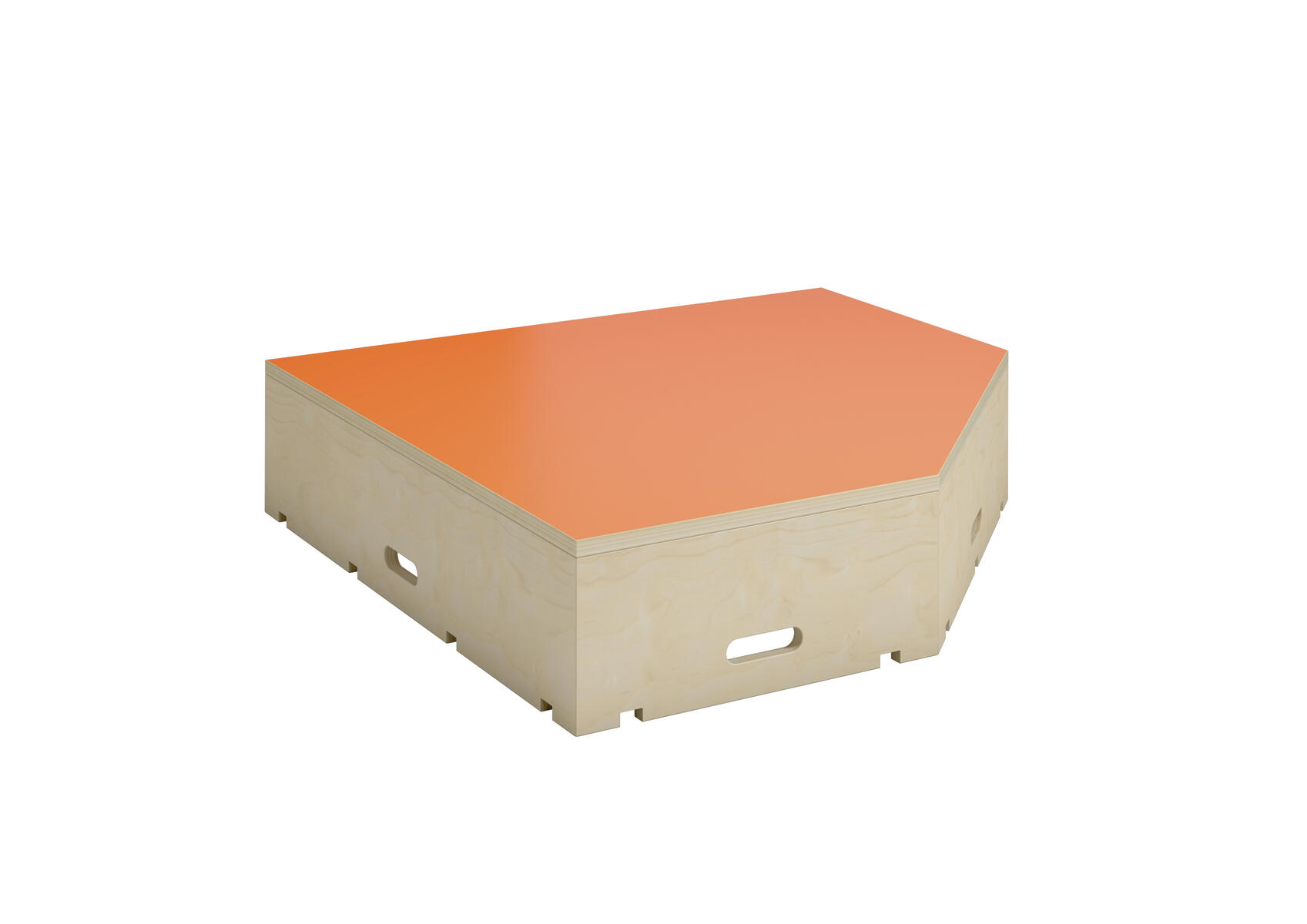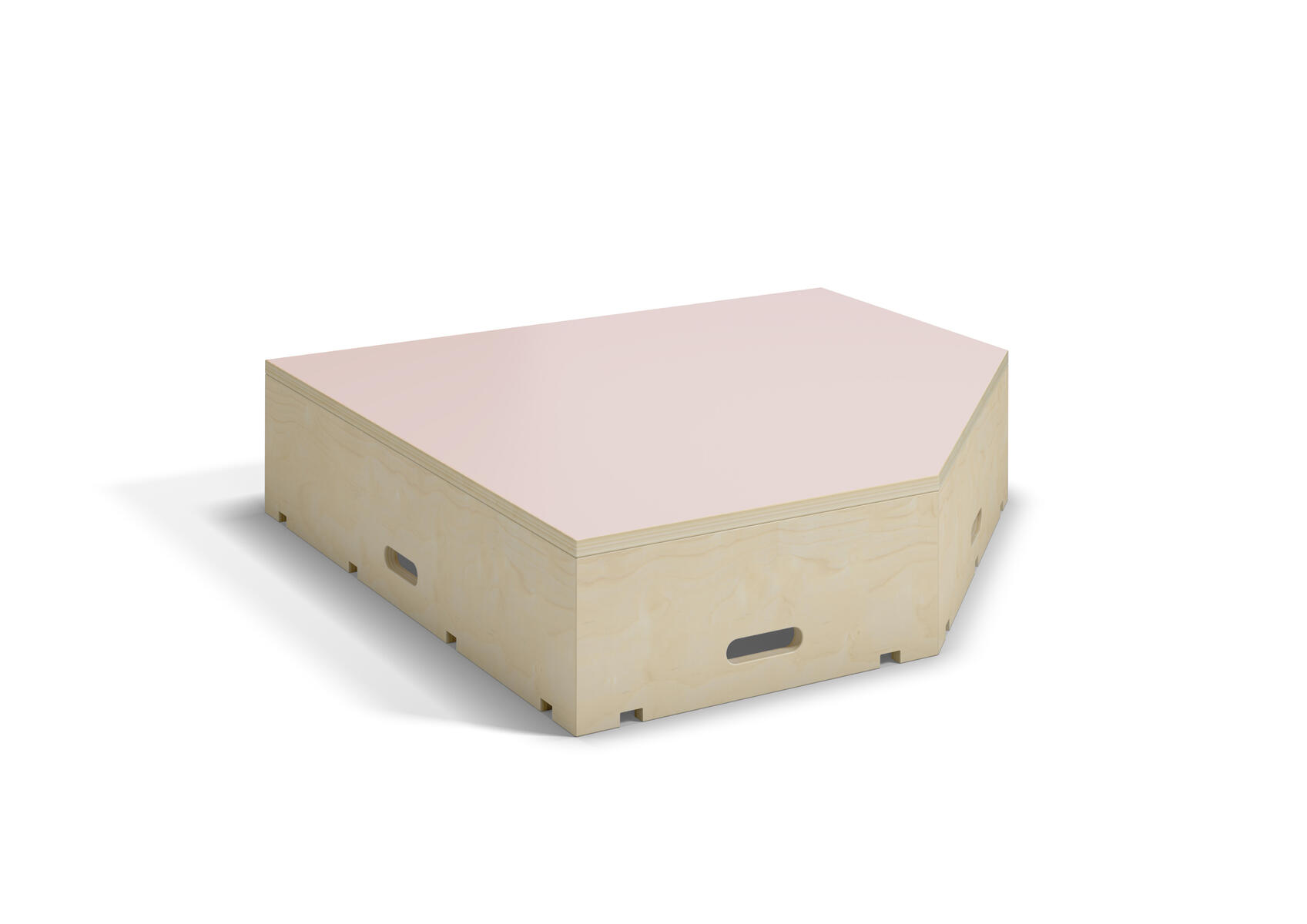 Podium til børnehave. Fås i mange forskellige varianter, som kan bygges sammen i uendelige former. Kan også bygges sammen med vores FIXA opbevaringssystem både i bredden og dybden. Fås i 10 forskellige former. De kan bruges som scene, legeplads, forskellige køretøjer, udstilling, hvileplads...kun fantasien sætter grænser. Fremstillet i 100 % birkekrydsfinér. Alle dele fås i 3 højder. Podiet med birketop er helt i krydsfinér, de andre med farvet højtrykslaminat på toppen. Tørres af med en fugtig klud. Mål: 88x46x59 cm. Svanemærket, licensnummer 5031 0099.