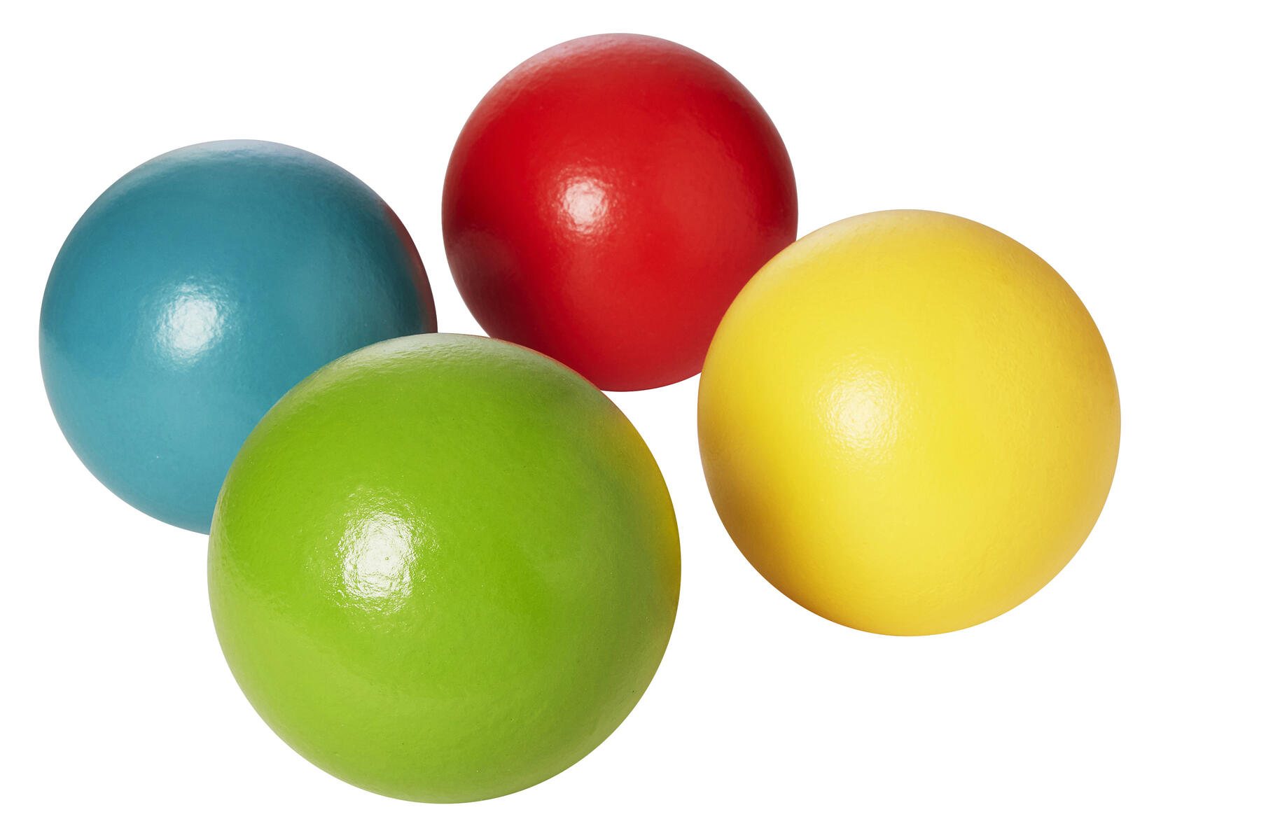 4 stk. bløde skumbolde i fire forskellige farver. Gribevenlige. Beklædt med et gummilignende materiale af polyuretan, der gør det nemt at holde bolden ren. Vægt 165 g. Fra 3 år.