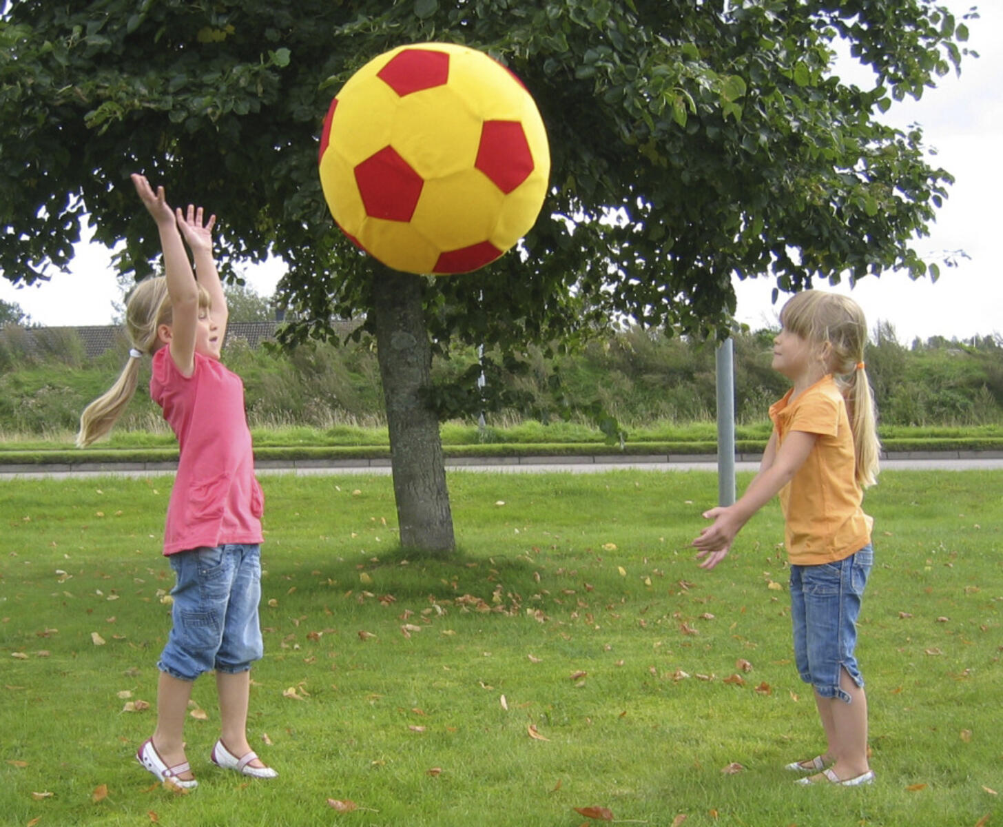 En stor, let bold. Mange traditionelle boldøvelser bliver kreative og sjove med denne gigantiske bold. Træner balance, bevægelighed og opmærksomhed. Bolden kan kastes eller sparkes. Kan bruges både ude og inde. Ø100 cm. Latexblære og kapsel af nylon.