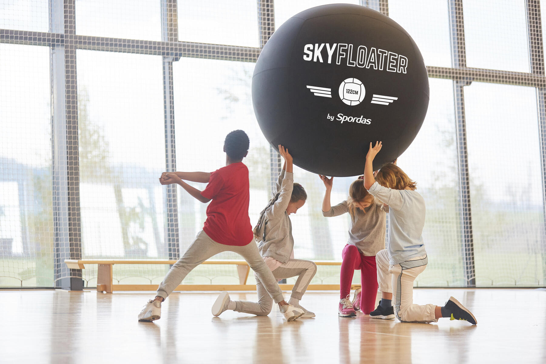 En stor, let bold, der er nem at håndtere. Bruges f.eks. til den officielle sport kin-ball. Mange traditionelle boldøvelser bliver kreative og sjove med denne kæmpe bold, der træner balance, bevægelighed og opmærksomhed. Bolden kan kastes eller sparkes, og den kan bruges både indendørs og udendørs. Mål: Ø122 cm. Latexblære og nylonbetræk.