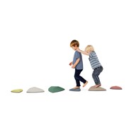 6 stk./pk. Træner børnenes koordination, balance og evne til at bedømme afstande. Stenene er trekantede og har gummifødder. Indhold: 3 sten 25x25x25 cm, højde 4,5 cm, samt 3 sten 36x36x36 cm, højde 8,5 cm. Af polyetenplast.