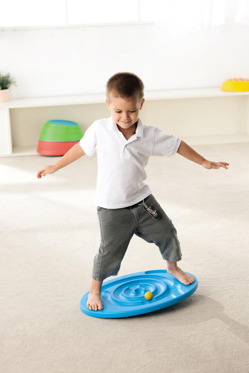 Et rundt balancebræt som forbedrer både balance og koordination. På oversiden er der et enkelt labyrintmønster, som giver barnet flere udfordringer ved brug. 3 bolde medfølger. Mål: 54x40x2,5 cm. Af polyeten og TPR. Maks. 60 kg. Fra 3 år.