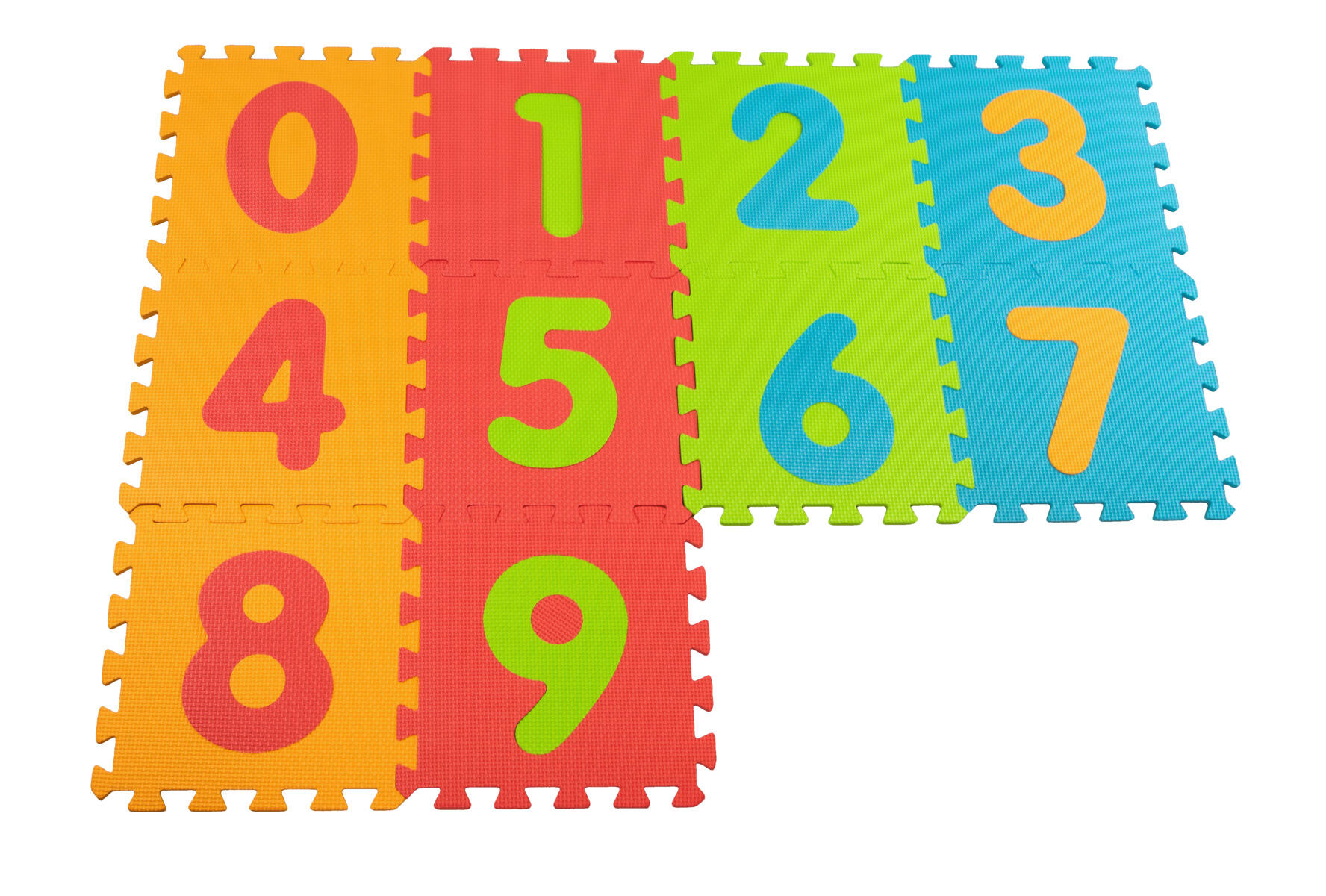 10 stk./pk. En lyddæmpende legemåtte, der kan bruges både som puslespil og som underlag til leg på gulvet. Indbyggede tal, der også fungerer som puslespilsbrikker. Mål: 32 x 32 x 1 cm. Af EVA. PVC-fri. Fra 1 år.