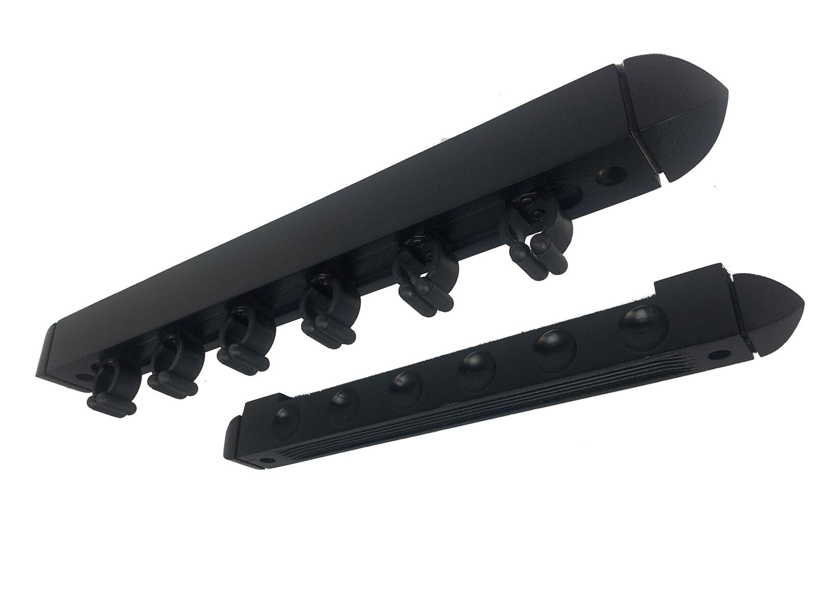 Vægholder til billardkøer. Plads til 6 køer. Af ABS, metal og træ.