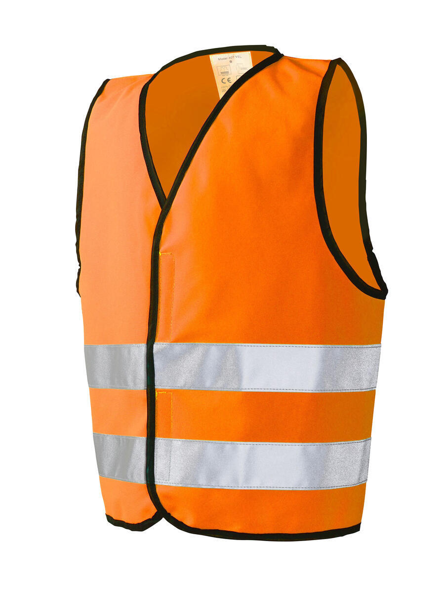Børnevest med velcrolukning foran. Løkke til ophæng. Testet og godkendt iht. gældende standarder. Mål: 55x45 cm. Vesten er et sikkerhedsprodukt, og dens funktion forringes, når den bliver beskidt. Den er ikke beregnet til leg.