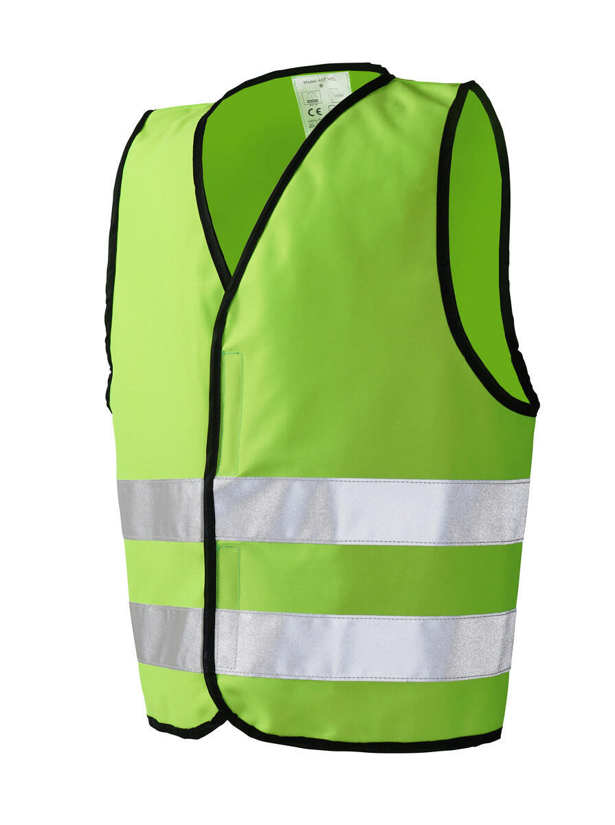Børnevest som lukkes med velcro foran. Hank til ophæng. Testet og godkendt iht. standard. Mål: 45x35 cm. Vesten er et sikkerhedsprodukt, og dens funktion forringes, når den bliver beskidt. Den er ikke beregnet til leg.