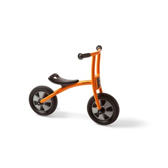 En pædagogisk løbecykel som er fremragende til udvikling af små børns balance og motorik. Den er let at komme op på, selv for små børn. En rigtig god overgang når børnene skal gå fra trehjulet til de større modeller. Siddehøjde 31 cm, højde 43 cm, længde 75 cm og bredde 41 cm. Vægt 4,5 kg. Alder 2-4 år.