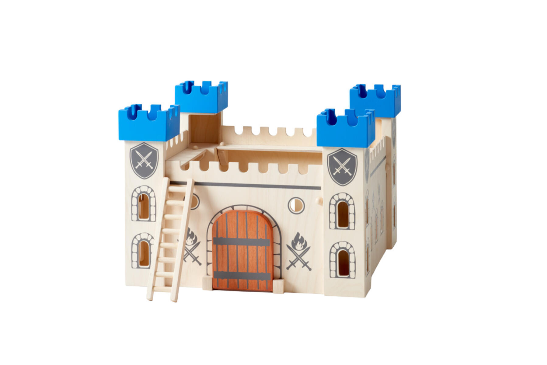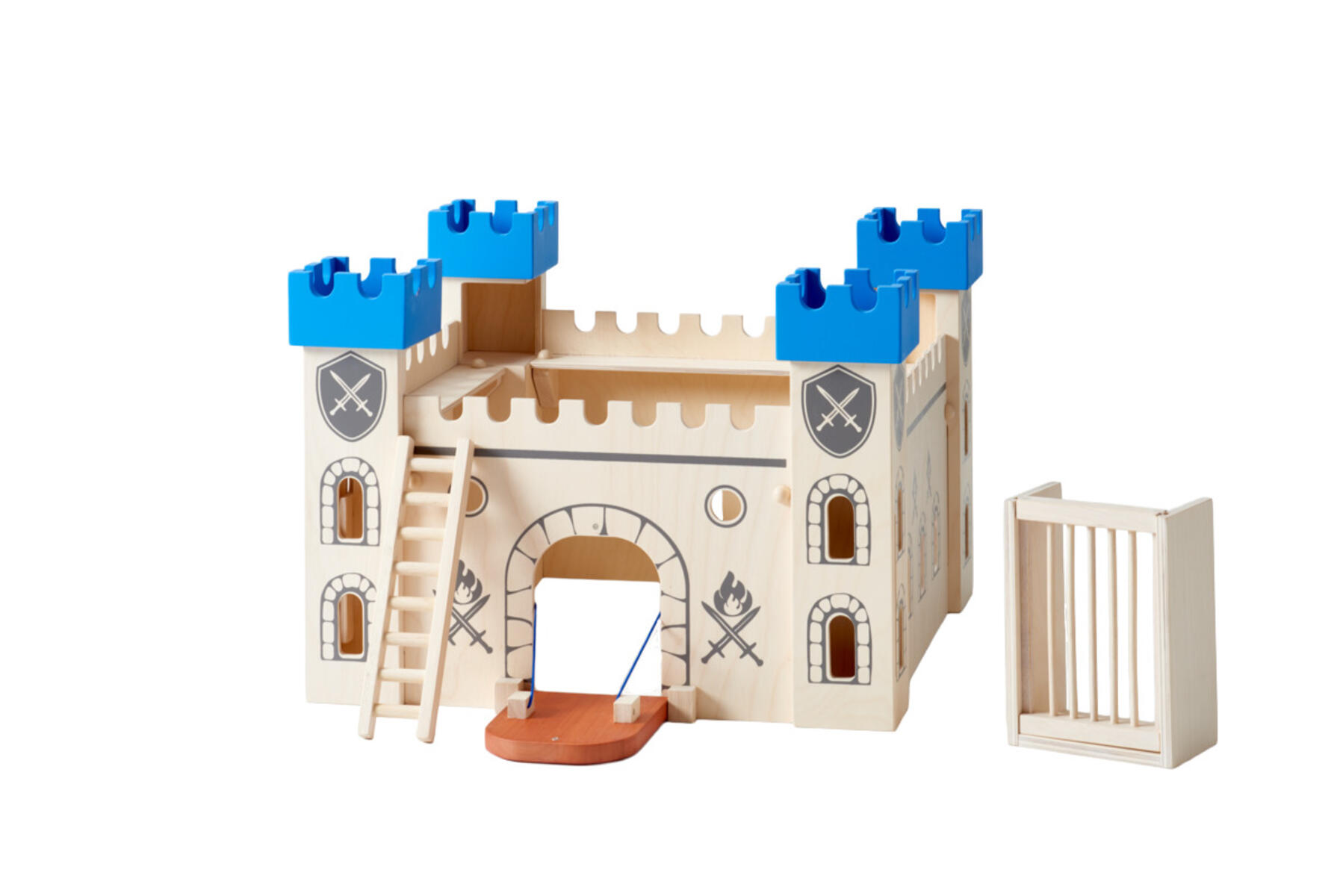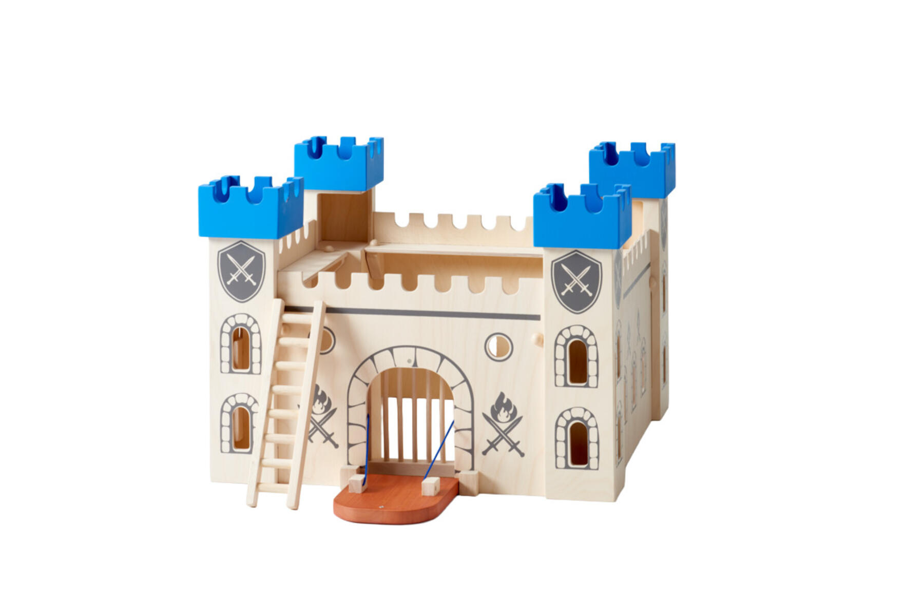 Sørg for, at drager og monstre ikke kommer forbi ridderborgens mure! En flot ridderborg af FSC-godkendt krydsfinér med stige og fængsel. Let at samle uden skruer. Mål: 46x46 cm. Tårnets højde 34 cm. Figurer medfølger ikke. Fra 3 år.