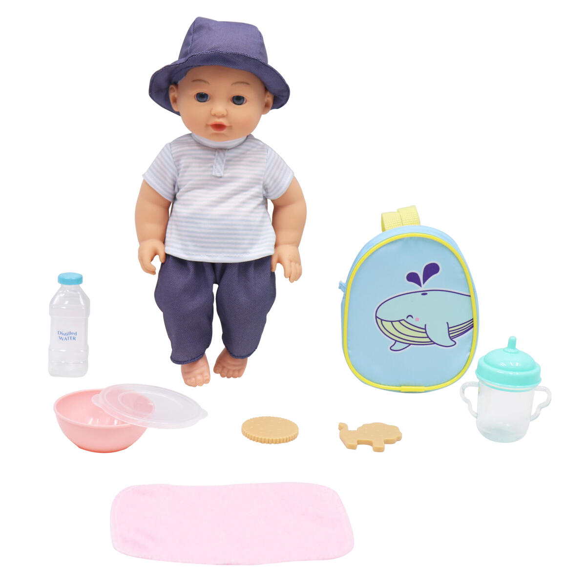 30 dele. Et stort sæt med dukketilbehør. Sættet indeholder sutteflasker, potte, legetøj, sut, tallerkener og bestik samt legemad. Alt kan nemt opbevares i tasken. Af HIPS, LDPE og PE. Fra 3 år.