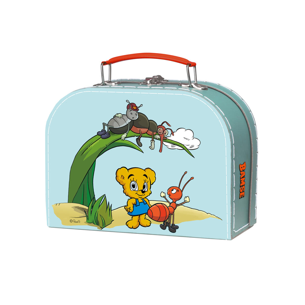 Denne kuffert er perfekt til små eventyrere og har plads til alle de vigtigste ting. At pakke, bære, åbne og lukke kufferten lægger op til mange sjove og lærerige lege. Fremstillet af kraftigt pap med håndtag i stål. Passer perfekt til opbevaring af Bamse-figursæt. Mål: L8 x B25 x H19 cm.
