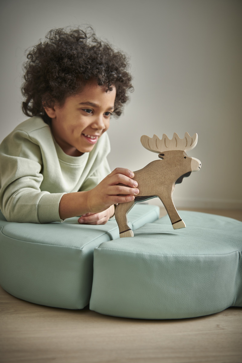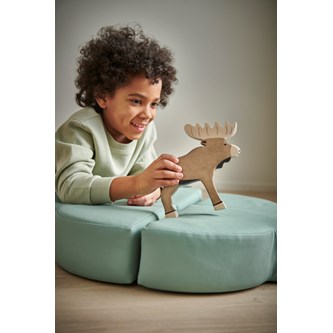 6 stk./pk. Flotte dyr af træ. Dyrenes design og stabile form gør dem nemme at lege med. De er 2,5 cm tykke og behagelige at holde om. Figurerne er malet med giftfri, vandbaseret maling. Indeholder elg, bjørn, vildsvin, ulv, ræv og egern. Mål på elg: 18,5x18 cm. Fra 3 år.