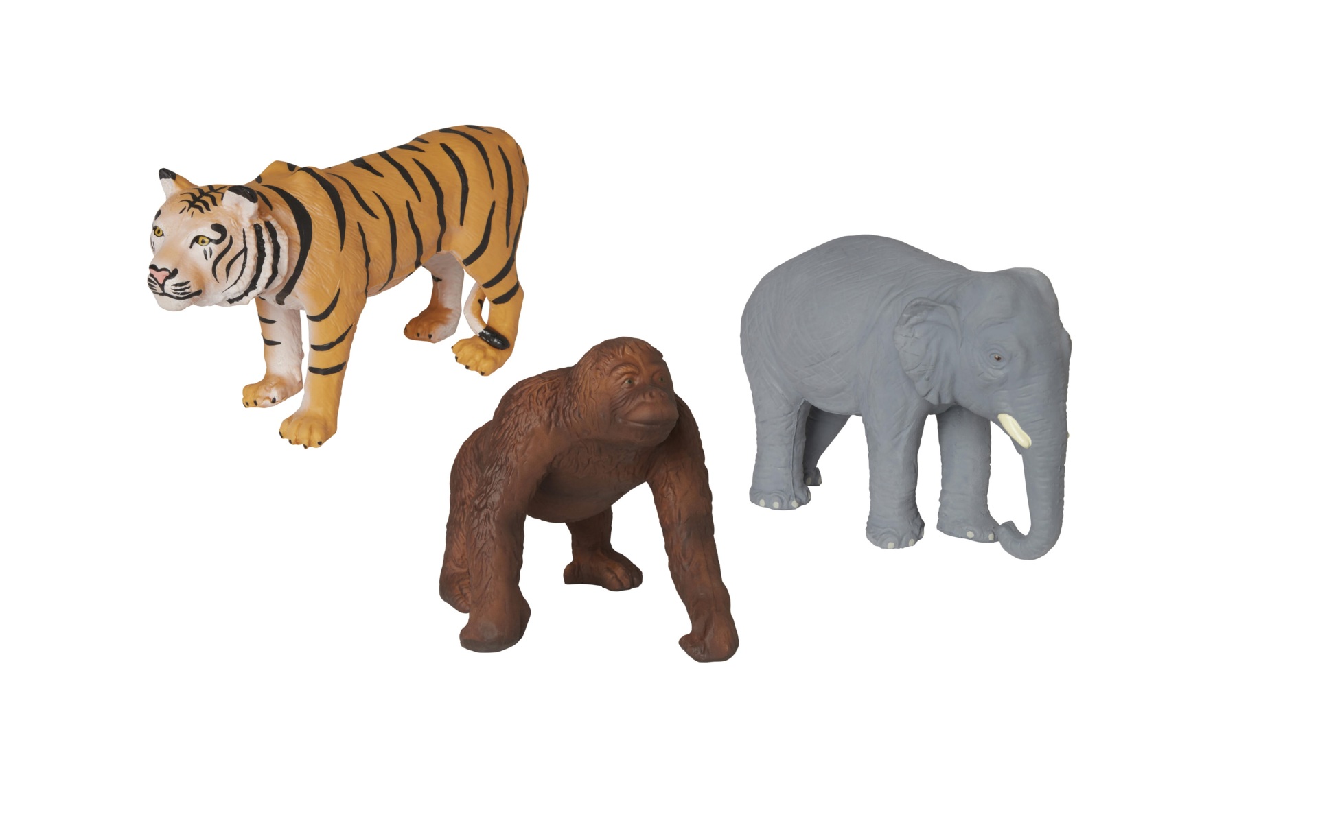 16 stk./pk. Et sæt klassiske dyr fra forskellige dele af verden. Dyrene har mange detaljer og er håndlavede. Alligatoren er 20,5 cm lang og zebraen 8,5 cm høj. Mål: 5-20 cm. Af TPE. Fra 3 år.