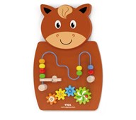 Flot væghængt aktivitetstavle formet som en hest med forskellige sjove aktiviteter til at træne de finmotoriske færdigheder. Mål: 36x55x3,5 cm. Af FSC-certificeret træ. Fra 18 måneder.