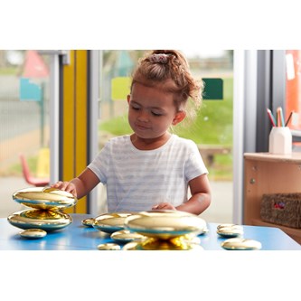 20 stk./pk. Dette sæt glatte, metalliske spejlsten vil fascinere børn, når de stabler dem eller sorterer dem efter størrelse. Læg mærke til forskellene, sorter og sæt dem på række eller byg tårne af dem. Byg f.eks. månelandskaber i miniatureudgave med dem. Til indendørs brug og gerne på bløde overflader, da skarpe genstande kan ridse overfladen. Rengøres med en blød klud. Af ABS. Spejlstenene består af 4 forskellige størrelser fra 4,5 til 15 cm i diameter. Fra 10 måneder.