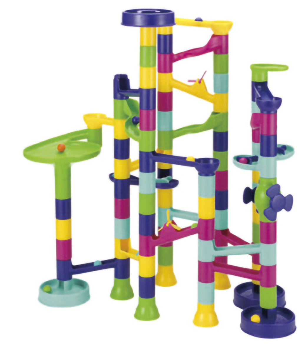 88 dele. Delene er nemme at sætte sammen og er lavet af et slidstærkt materiale, som kan tåle at blive leget med. Udvikler kreativitet og logisk tankegang. Sættet indeholder 10 kugler. Fra 3 år.