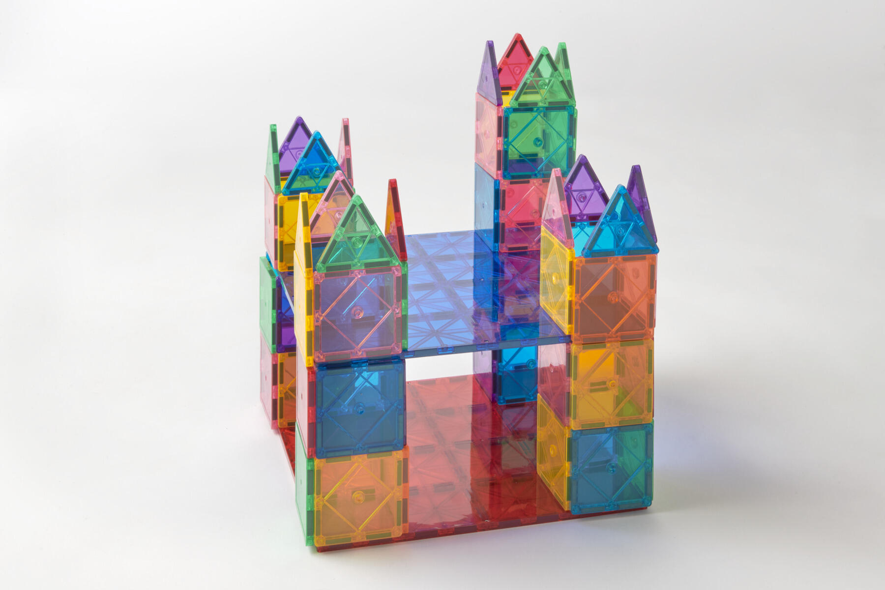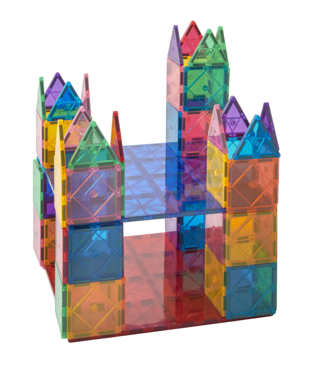 100 stk./pk. Transperante magnetiske brikker i plast som inspirerer små hænder til at skabe og konstruere i 3D. De magnetiske brikker passen sammen på alle led. Børnene kan bygge både småt og stort ved nemt at tilføje flere og flere brikker. Gennem legen udvikler børnene forskellige færdigheder såsom genkendelse af former, finmotorik, mønstre, matematik og rumlig bevidsthed. Indeholder tre forskellige trekanter og to forskellige kvadratiske former. Mål på kvadrat 7,5x7,5 cm eller 15x15 cm. Af ABS. PVC-fri. Fra 3 år.