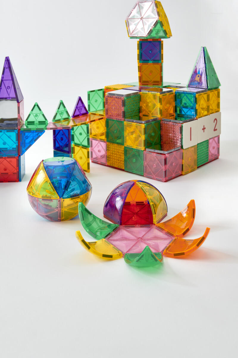 200 stk./pk. Transparente magnetiske brikker i plast som inspirerer små hænder til at skabe og konstruere i 3D. De magnetiske brikker passer sammen på alle led. Børnene kan bygge både småt og stort ved nemt at tilføje flere og flere brikker. Gennem legen udvikler børnene forskellige færdigheder såsom genkendelse af former, finmotorik, mønstre, matematik og rumlig bevidsthed. Indeholder tre forskellige trekanter og to forskellige kvadratiske former. Mål på kvadrat 7,5x7,5 cm og 15x15 cm. Af ABS. PVC-fri. Fra 3 år.