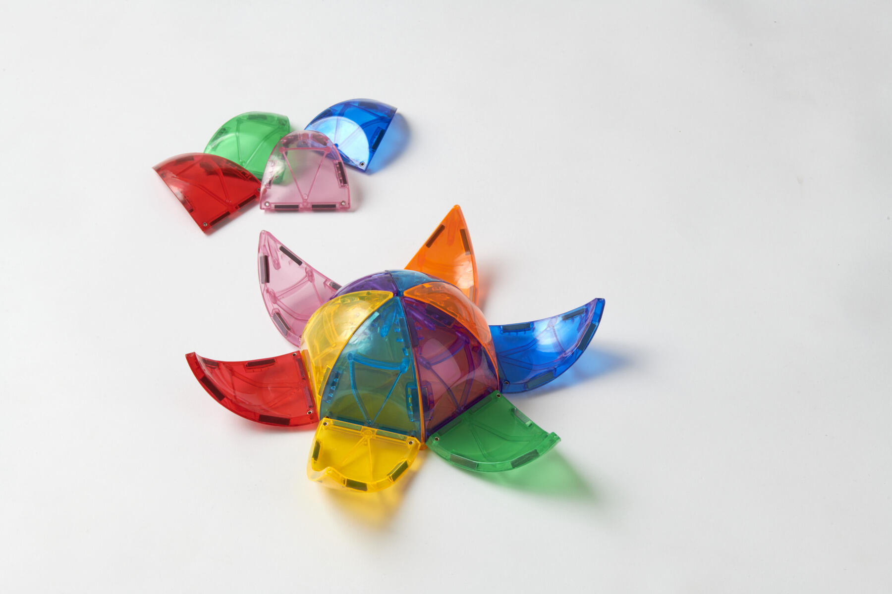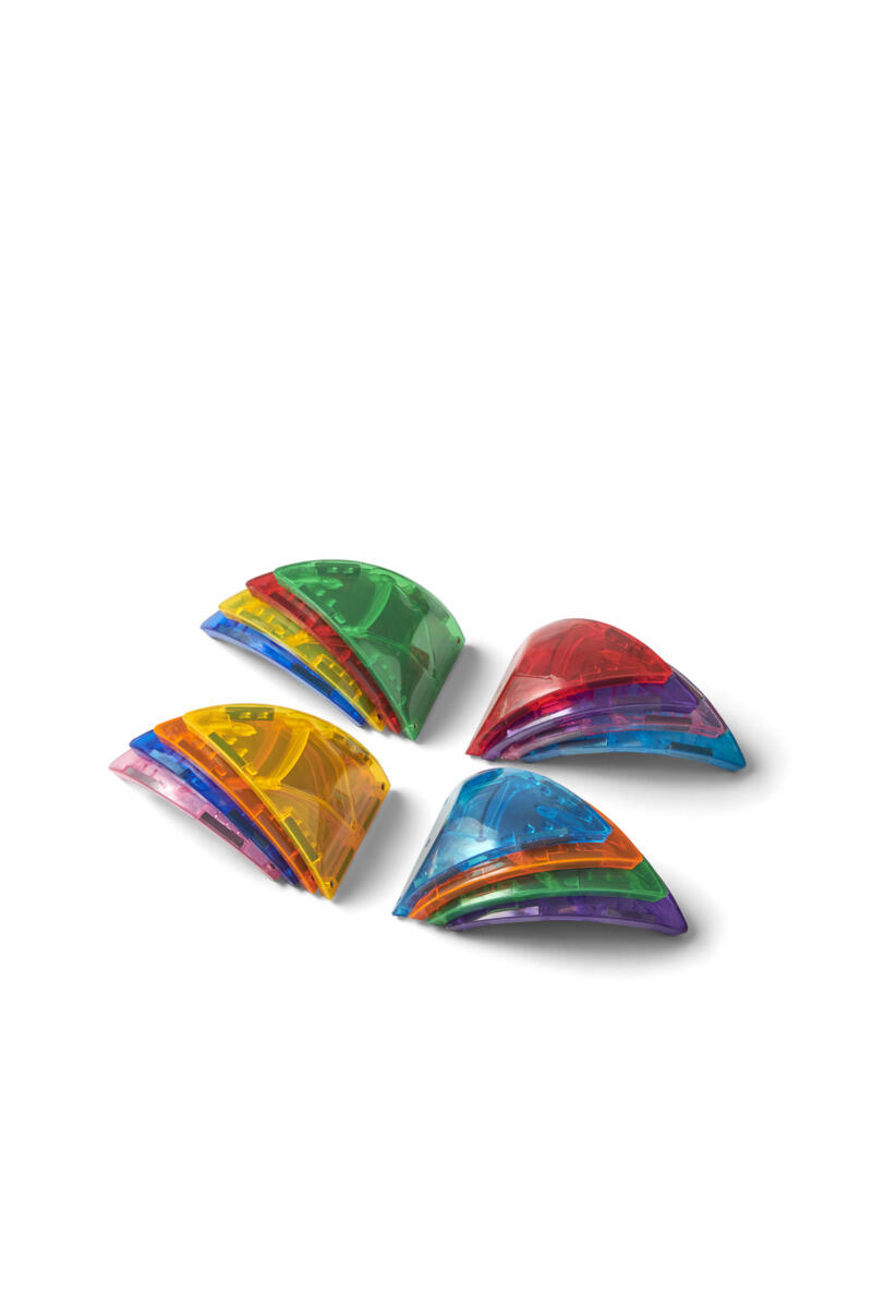 16 dele/pk. De specialdesignede, trekantbøjede byggeplader lærer børn om nye former og geometri, som de straks kan bruge i deres egne konstruktioner. De bøjede plader udfordrer børns problemløsning og evne til at tænke kreativt. Passer perfekt sammen med 117791 Mag Genius regnbuesæt. Mål per del: L11,5xB7,5 cm. Af ABS. PVC-fri. Fra 3 år.