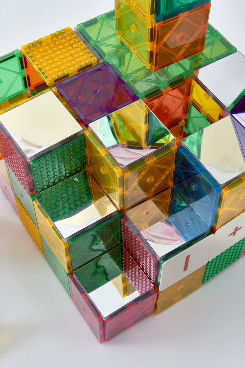 100 stk./pk. Transperante magnetiske brikker i plast som inspirerer små hænder til at skabe og konstruere i 3D. De magnetiske brikker passen sammen på alle led. Børnene kan bygge både småt og stort ved nemt at tilføje flere og flere brikker. Gennem legen udvikler børnene forskellige færdigheder såsom genkendelse af former, finmotorik, mønstre, matematik og rumlig bevidsthed. Indeholder tre forskellige trekanter og to forskellige kvadratiske former. Mål på kvadrat 7,5x7,5 cm eller 15x15 cm. Af ABS. PVC-fri. Fra 3 år.