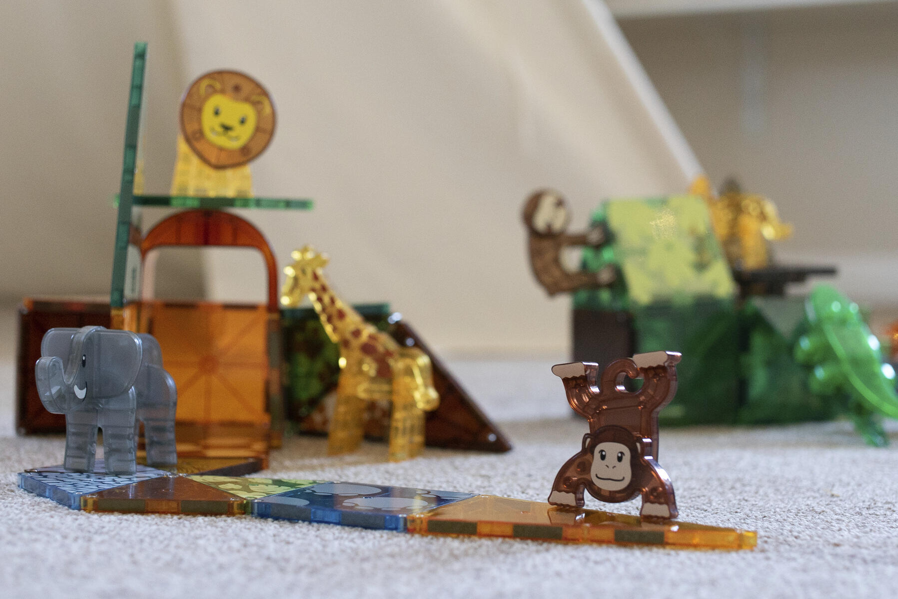 75 dele. Magna-Tiles er store magnetiske byggeplader, som er sjove at bygge med og fremmer leg, kreativitet og sjov læring. Indeholder dyr og byggeplader i forskellige former. Af ABS. Fra 3 år.