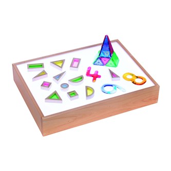 Magna-Tiles er magnetiske byggeplader, som består af store og små tre- og firkantede, transparente plader i forskellige farver, som tiltrækker hinanden, når børnene bygger. Består af tre forskellige trekanter og to forskellige kvadratiske former. Mål på kvadrat 7,5x7,5 cm og 15x15 cm. Af ABS-plast. Fra 3 år.