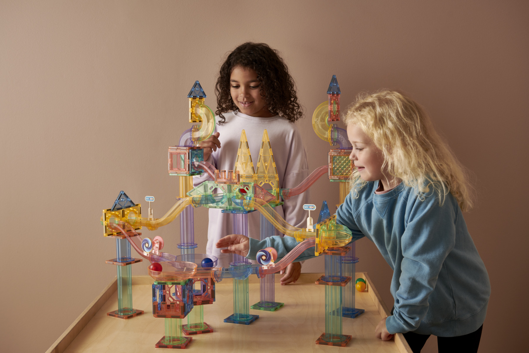 91 dele. Mag Genius STEM-udviklende kuglebaner er fantastiske, da de udvikler sig i takt med barnets evner. For de yngste anbefales det at bygge banen sammen med en voksen eller pædagog med fokus på leg. Efterhånden som barnet bliver ældre, udvikles deres konstruktionsfærdigheder, så de selv kan bygge enklere og senere mere avancerede baner. Banen kan med fordel bruges i klasseværelset som en del af undervisningen – hvorfor ikke kombinere teknik og fysik ved at bygge en bane og måle kuglens hastighed, når den ruller ned? Indeholder gennemsigtige farvede byggeplader i forskellige former samt små tilbehør, der kan tilføjes på kuglens vej for en sjovere legeoplevelse. 4 kugler medfølger. Byggevejledning medfølger. Af ABS. PVC-fri. Fra 3 år.