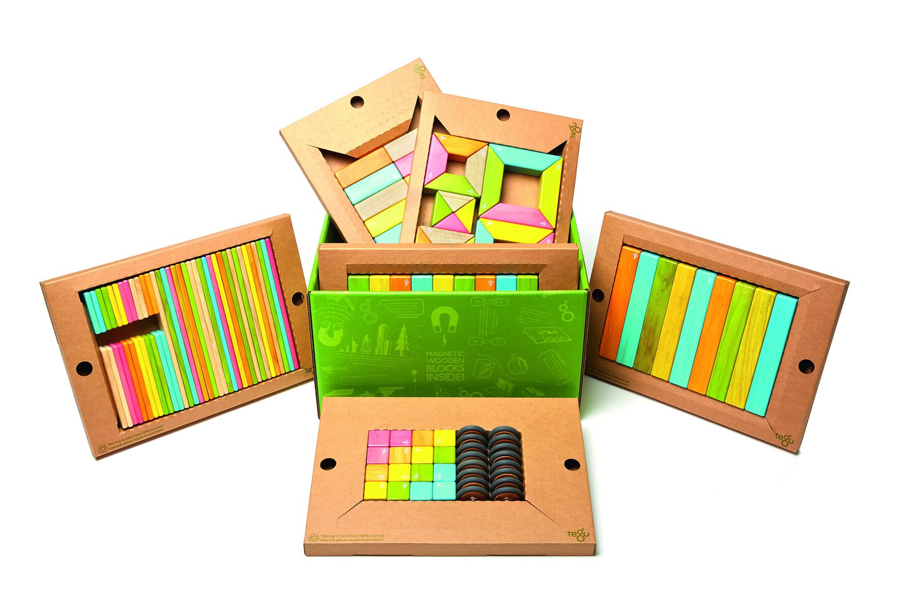 130 dele. Et stort sæt med fascinerende magnetiske træbyggeklodser. Fremmer en kombination af kreativitet, nysgerrighed, logisk tænkning, fantasi og eksperimenter. Indeholder: hjul, magnetiske blokke og stænger i forskellige former og farver. Eksempel på stængernes mål: 4,71x1,18 cm og blokkenes mål: 1,18x3,5 cm. Træklodserne er farvet med vandbaseret, ikke-giftigt maling. Leveres i en opbevaringsboks af pap. Rengøres med fugtig klud. Fra 3 år.