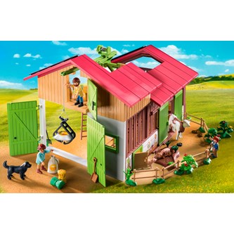 På den store bondegård er der en kran, moderne udstyr til køerne og svinesti med varmelampe til grisene. Siloen kan åbnes og tømmes. Dyr, figurer og andet tilbehør medfølger. Mål: 46x50x29 cm. Af ABS. Fra 4 år.