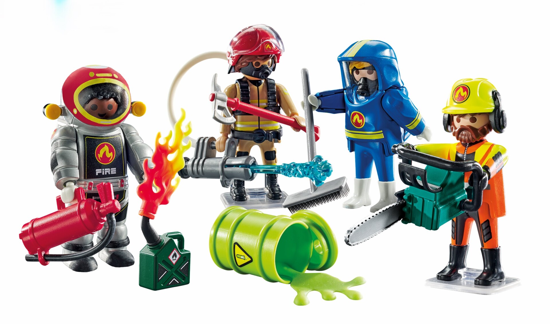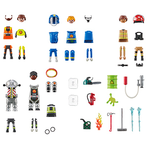 70 dele/pk. Lad børn udforske brandmandsrollen, skabe deres egne helte og genopleve alarmøjeblikket. Sættet indeholder 4 brandmænd og masser af tilbehør – herunder værktøj, slanger og beskyttelsesudstyr. Figurerne har udskiftelige arme, ben, hoveder og kroppe, som kan mixes og matches – perfekt til kreativ leg. Af ABS. PVC-fri. Fra 5 år.