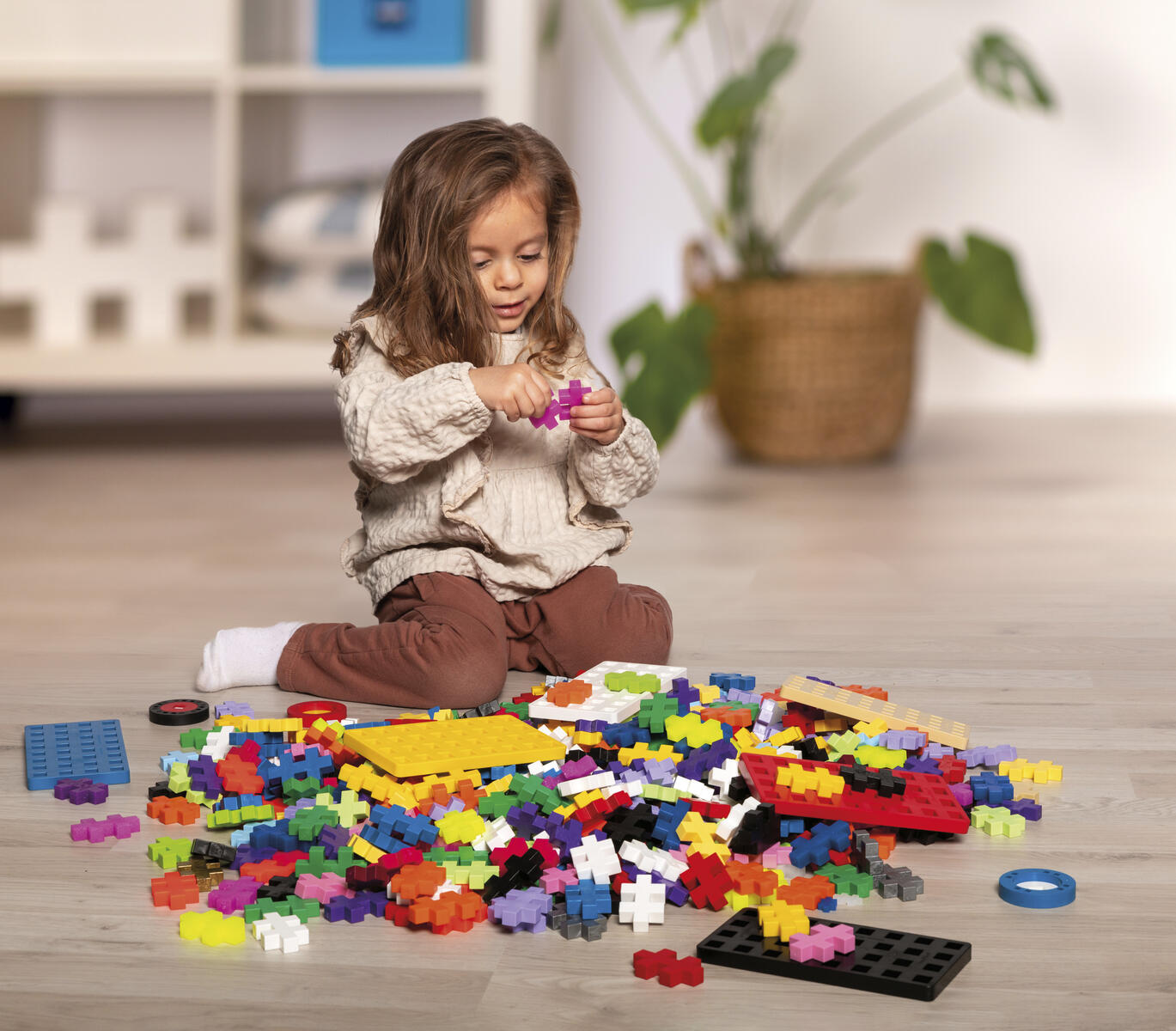 6000 stk./pk. Et gigantsæt med brikker i både neon-, pastel- og basisfarver. Brikkerne er nemme at sætte sammen, og man kan både bygge 2- og 3-dimensionelt med dem. Mål på brikker: 20x12x4 mm. Af levnedsmiddelgodkendt PE-plast. Fra 3 år.