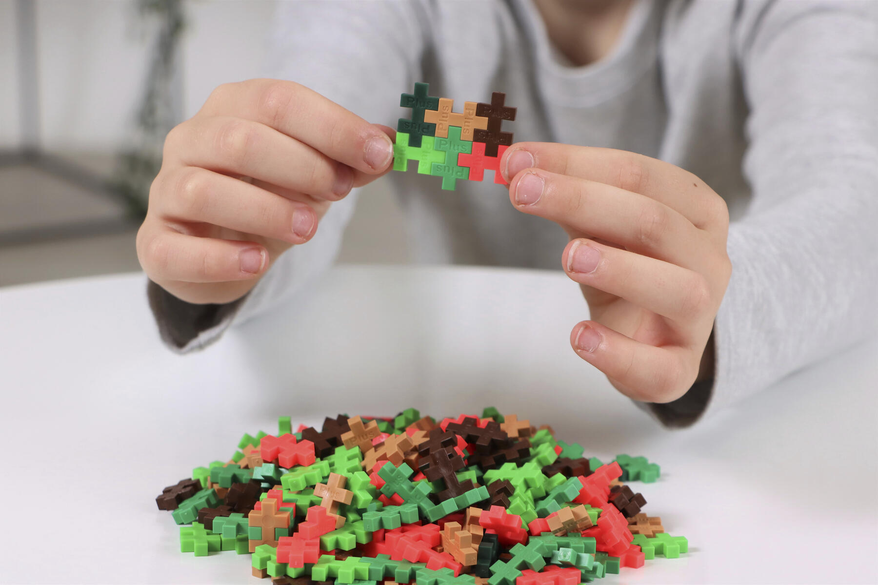 1200 stk./pk. Kun fantasien sætter grænser for de fantasifulde kreationer, man kan skabe med disse små byggebrikker i junglefarver. Konstruktionsleg udvikler børns kreativitet, problemløsning og finmotorik. Med PLUS-PLUS kan de bygge både todimensionelt og tredimensionelt. Af levnedsmiddelgodkendt PE. Fra 3 år.